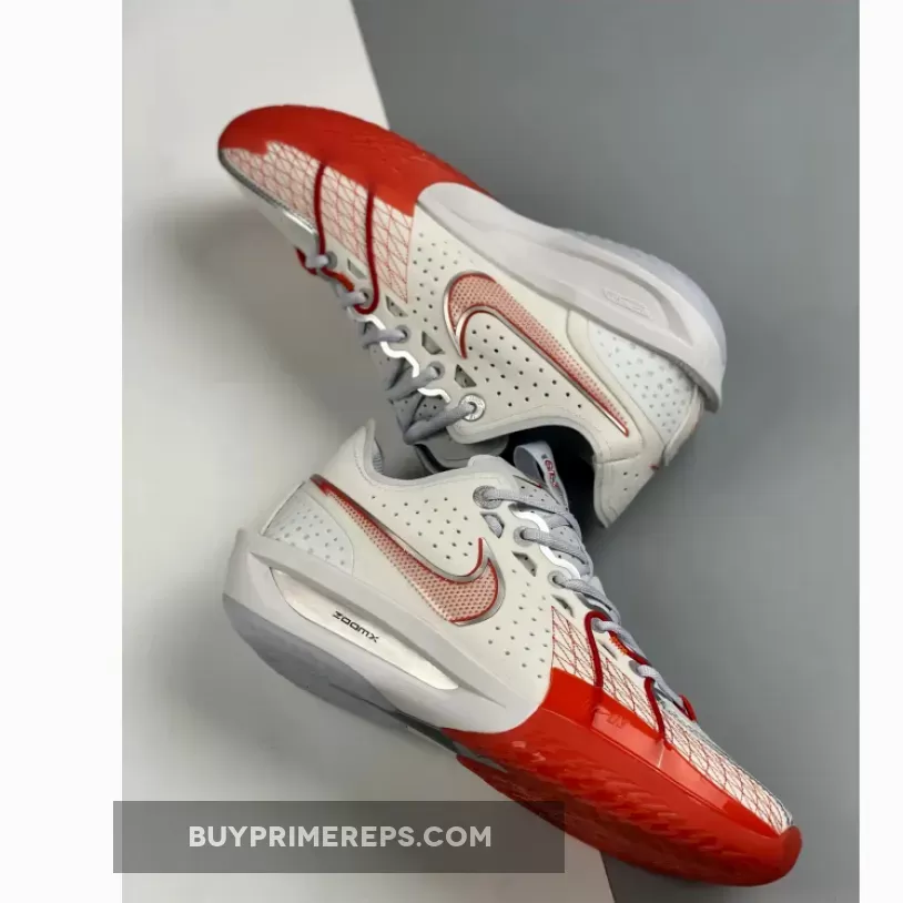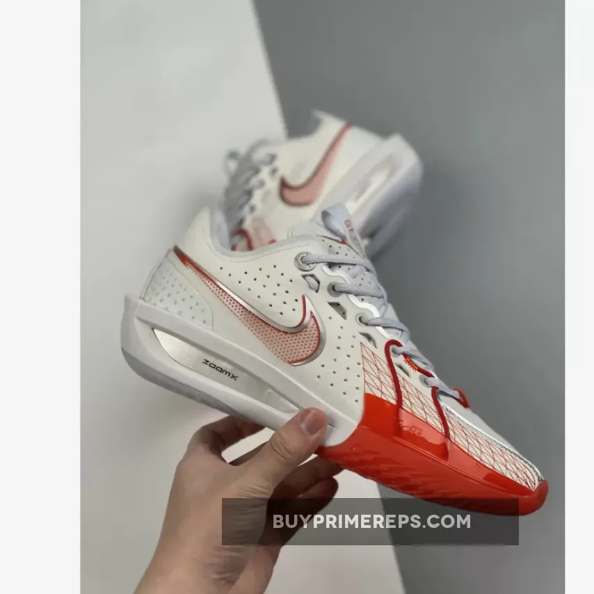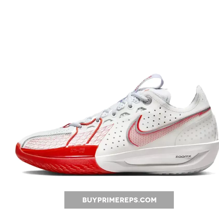 The design of the Zoom G.T. Cut 3 is not only functional but also visually appealing. The transparent TPU encasing the Swoosh branding adds a unique touch, with its red and metallic silver contour standing out against the white background. This attention to detail elevates the overall aesthetic of the shoe, making it a standout choice for basketball players who value both style and performance.