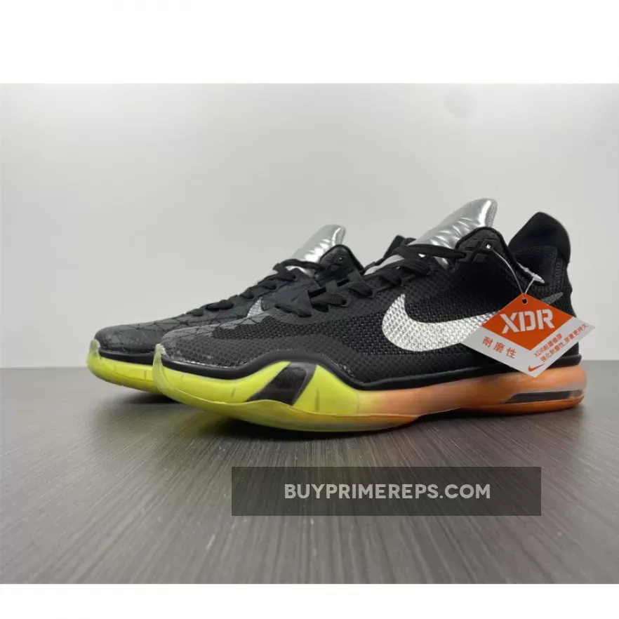 The Nike Kobe X AS Black boasts a sleek black Hyperfuse base, providing a lightweight and breathable feel. The shoe also features a Zoom Air Unit with TPU encasing, offering maximum cushioning and support during every step. The metallic silver tongue and Swoosh branding on the sidewalls add a touch of elegance and sophistication to the design.