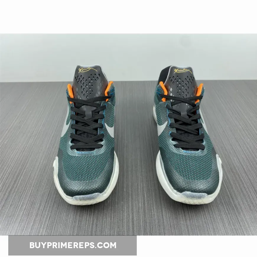 The Nike Kobe 10 Flight is a shoe that embodies the spirit of flight with its sleek design and innovative features. This edition of the Kobe 10 is dressed in a striking Teal, Black, and Bright Citrus color scheme that is sure to turn heads on and off the court.