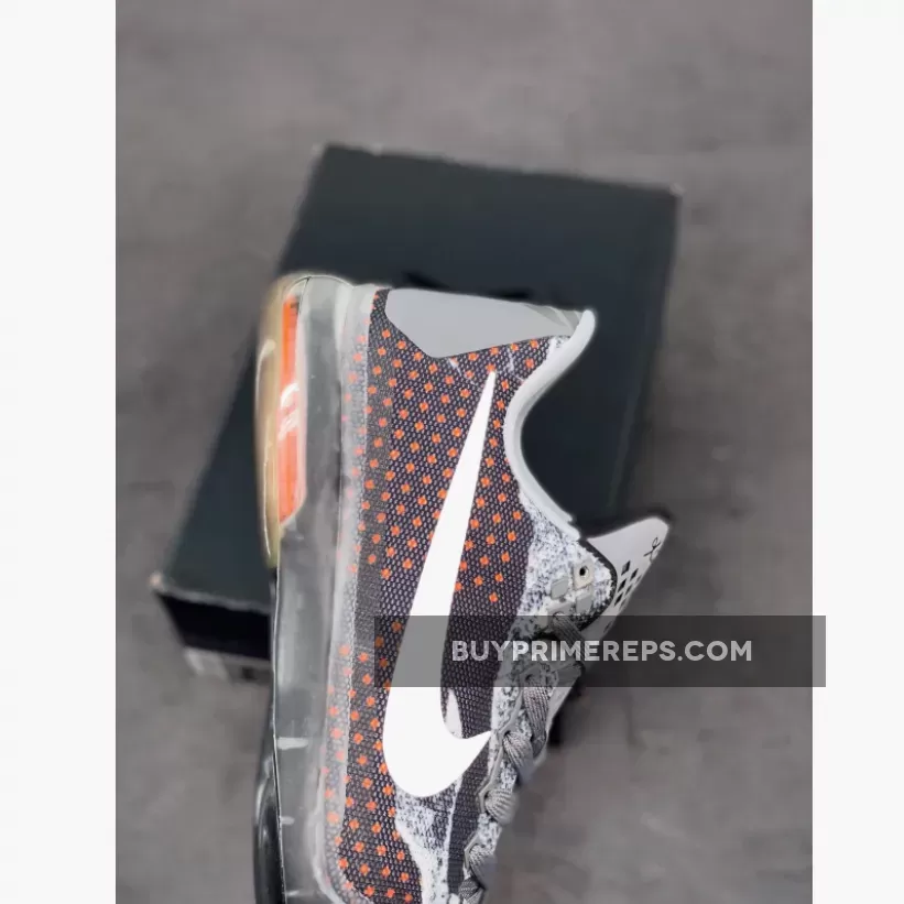 The design of the Nike Kobe X Pain is striking and unique. It features a mix of metallic silver, midnight navy, white, and team orange colors. The upper is constructed with a full mesh build and is covered in an eye-catching 3M reflective print. This print not only adds a stylish element to the shoe but also enhances visibility in low-light conditions. The print is complemented by red dot details throughout the base of the shoe, adding an extra layer of visual interest.