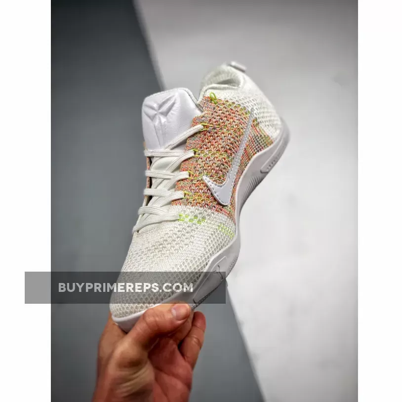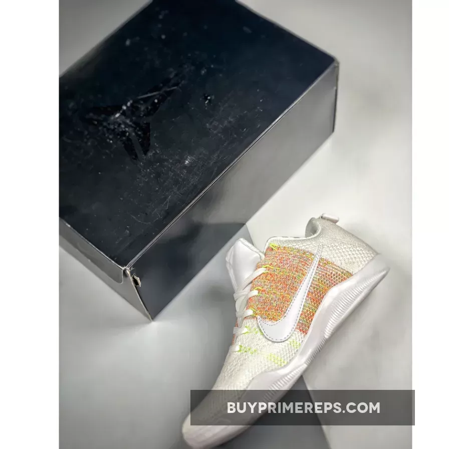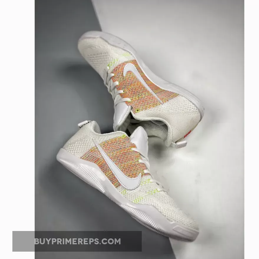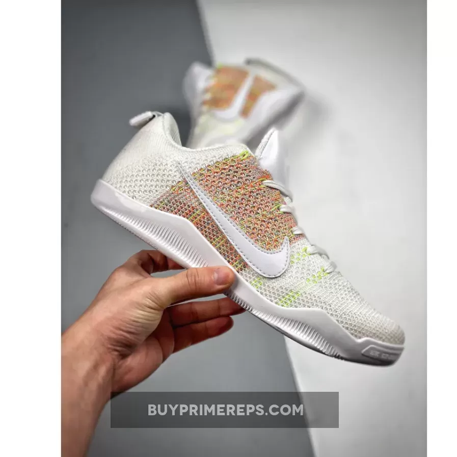Crafted with ultra-soft knitted material, the Nike Kobe 11 White Horse offers exceptional flexibility and lightweight comfort. The integrated laces provide a secure and snug fit, ensuring optimal performance both on and off the court. The white colorway is beautifully complemented by multi-color detailing, adding a touch of vibrancy and style to the shoe’s overall aesthetic.
