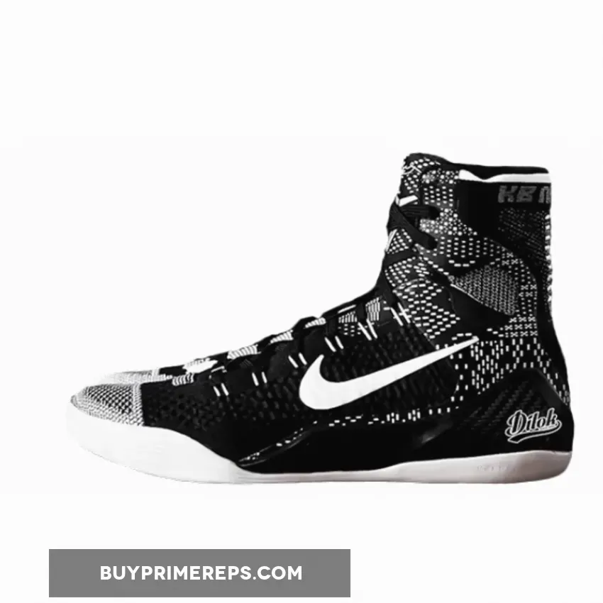 Introducing the Nike Kobe 9 Elite Black History Month 2015, a striking addition to the Nike BHM Collection for 2015. This remarkable sneaker features a captivating black and white colorway, with the entire upper crafted from Flyknit material, showcasing the 2015 Black History Month theme design. The shoe’s design incorporates a compelling combination of black and white print throughout the base, contributing to its visually dynamic appeal. To further emphasize its commemorative nature, the Nike and BHM branding is prominently displayed on the toe-box, heel, and back region, underscoring the significance of this release within the context of Black History Month. The shoe is elegantly finished with a pristine white sole unit, adding a touch of contrast to the overall aesthetic.