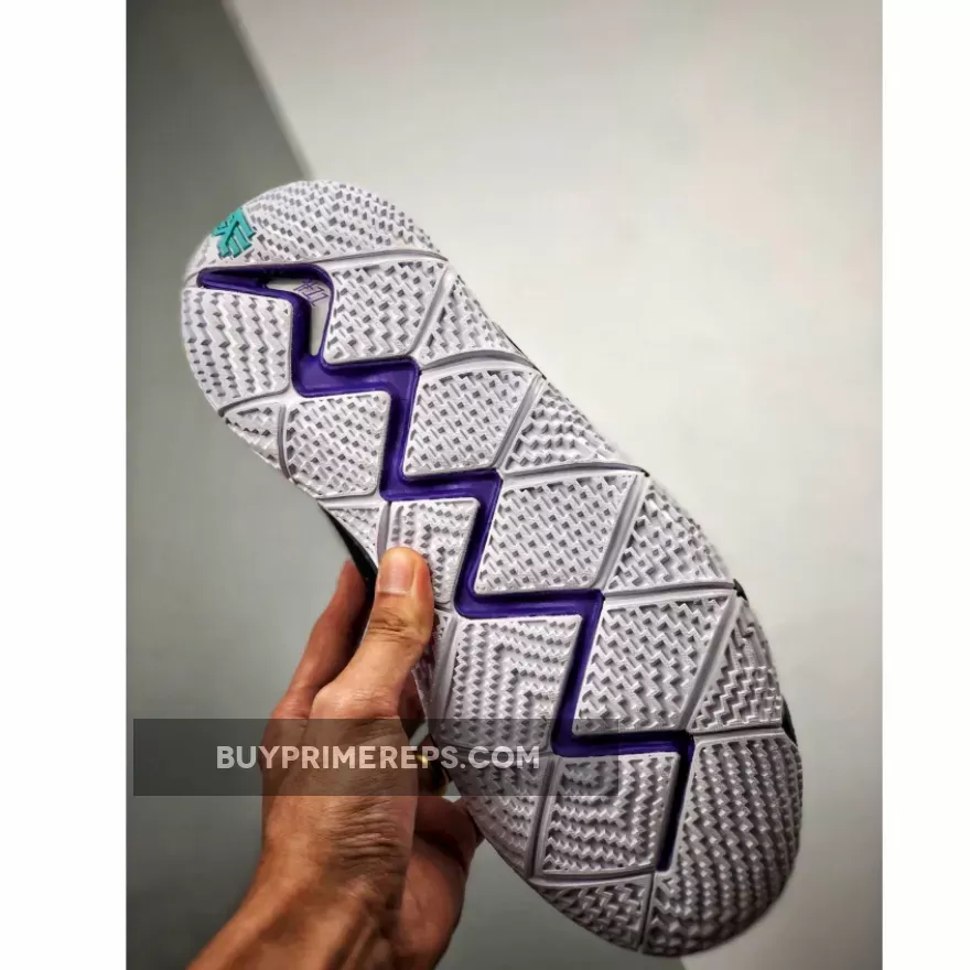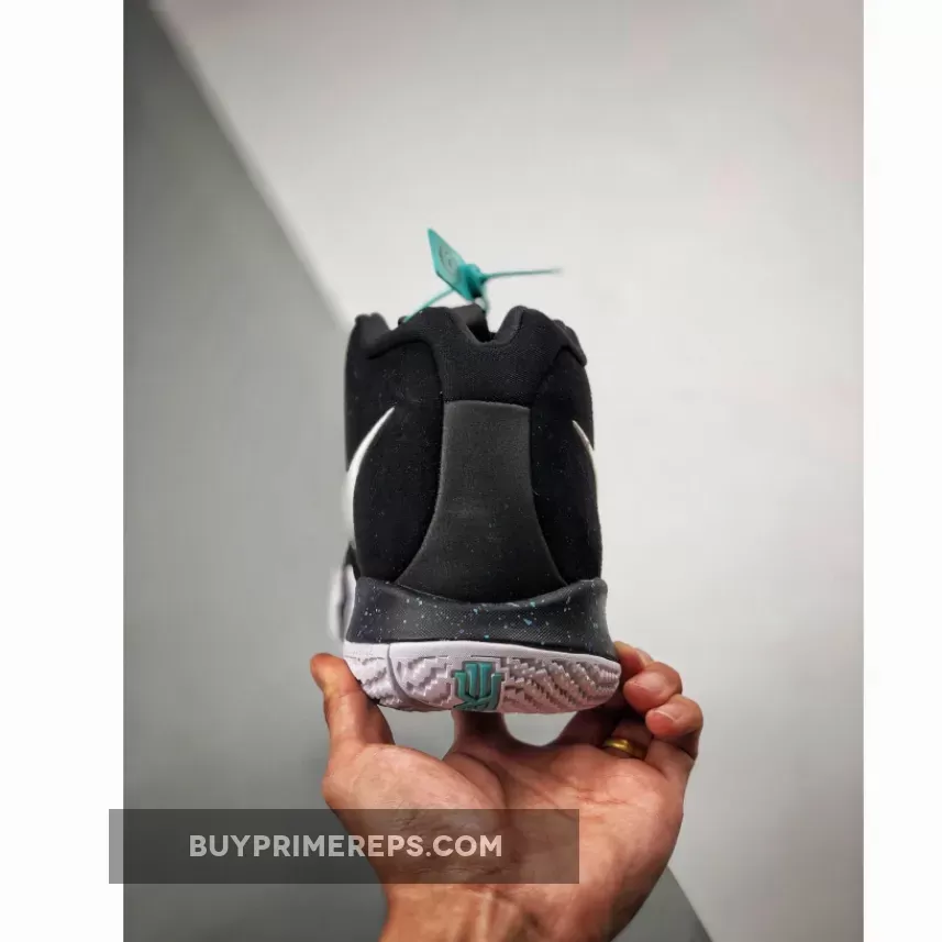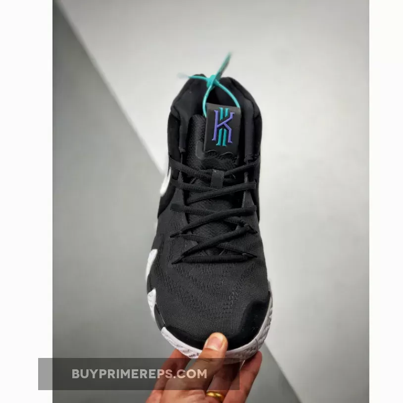 In terms of design, the Nike Kyrie 4 Black White features hits of turquoise for added flair. An embroidered Swoosh sits on the sidewall, showcasing the iconic Nike branding. A tonal set of laces are included to complete the sleek and stylish look of these basketball shoes. The tongue also features OG Nike branding, adding a touch of nostalgia to the overall design.