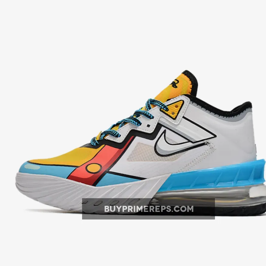 Inspired by the diabolical infant genius Stewie Griffin, this shoe boasts a predominantly greyscale upper with vibrant accents of red, yellow, and blue. The tongue features embroidered imagery related to each character from the show, adding an extra layer of personality to the design. But it’s not just about looks – the LeBron 18 Low also delivers on performance, featuring a React midsole for responsive cushioning and support.