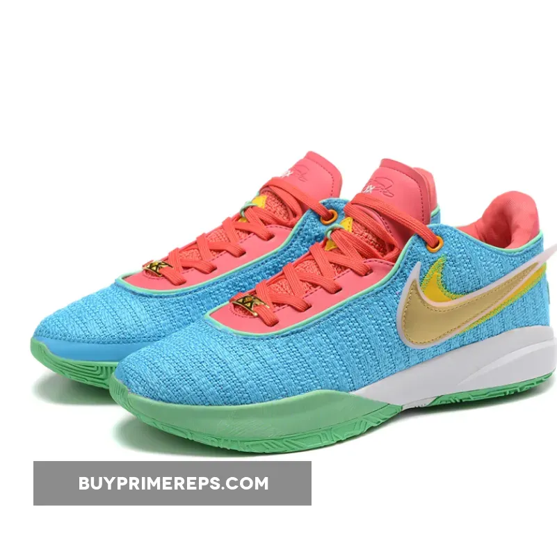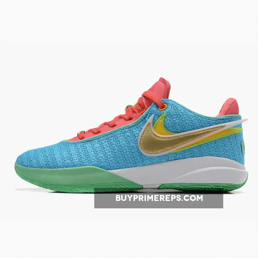 “5/5 stars! These LeBron 20s exceeded my expectations. The Laser Blue/Multi-Color/Hyper Pink/Green Glow colorway is SO cool! Knitted upper feels great, and the midsole cushioning is amazing. Highly recommend for a stylish and comfortable sneaker.” – Emily R.