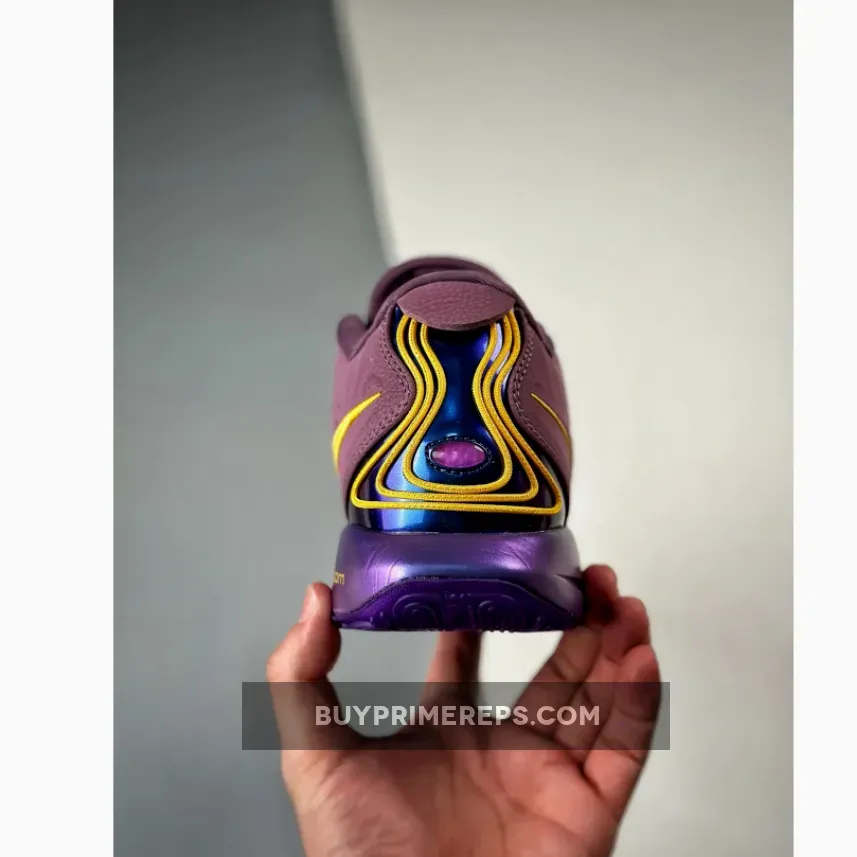 This stunning sneaker boasts high-quality construction and breathable perforations on the lateral toe. The semi-translucent Purple rubber outsole provides exceptional traction, while the luxurious design is completed with LeBron’s signature tongue branding and bungee eyelets.