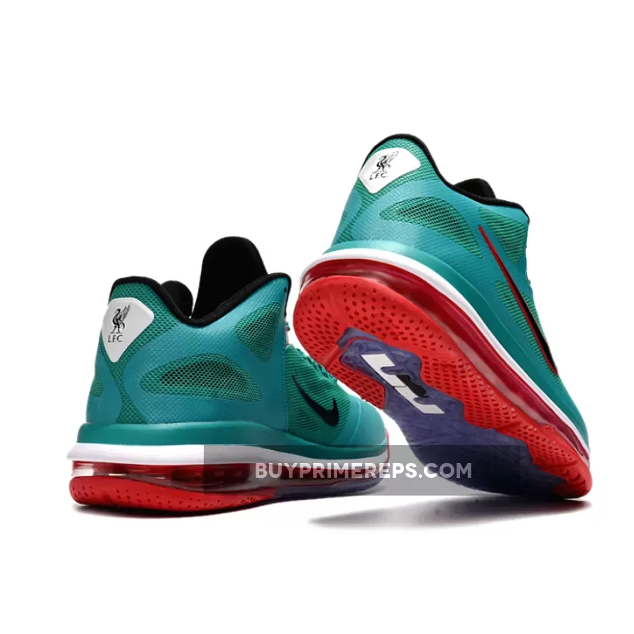 Experience the thrill of the pitch with the Nike LeBron 9 Low “Reverse Liverpool” Green/Black-Action Red-White. This limited-edition sneaker pays homage to the legendary Liverpool Football Club, a team that has captured the hearts of fans around the world.