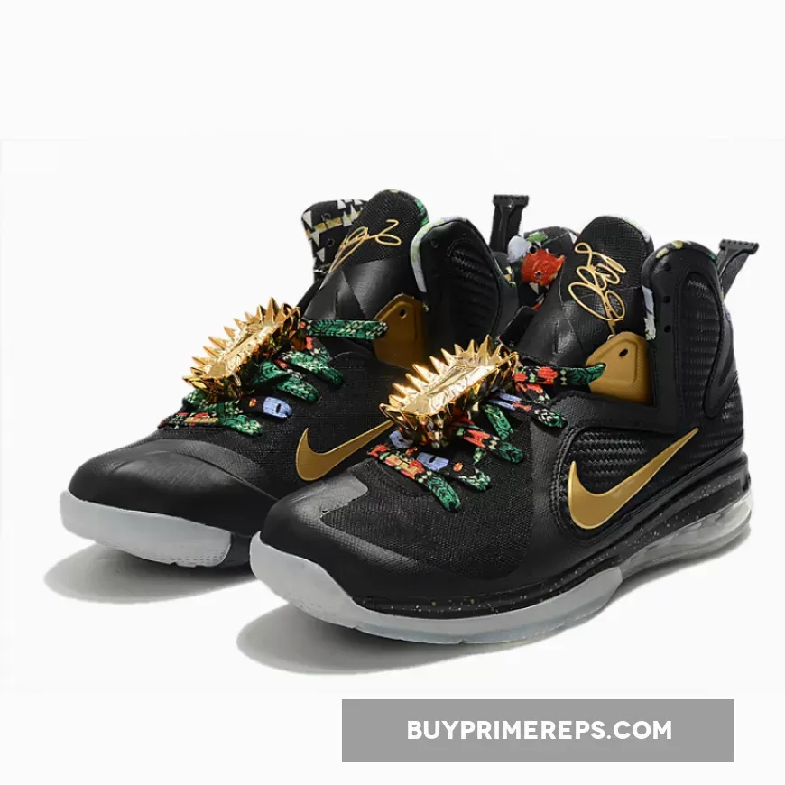 The legendary Nike LeBron 9 ‘Watch the Throne’ makes a comeback in 2023, celebrating the iconic album of the same name by Jay-Z and Kanye West. This limited-edition shoe features a premium black Hyperfuse upper adorned with metallic gold Swooshes, reminiscent of the opulent cover art. 👑