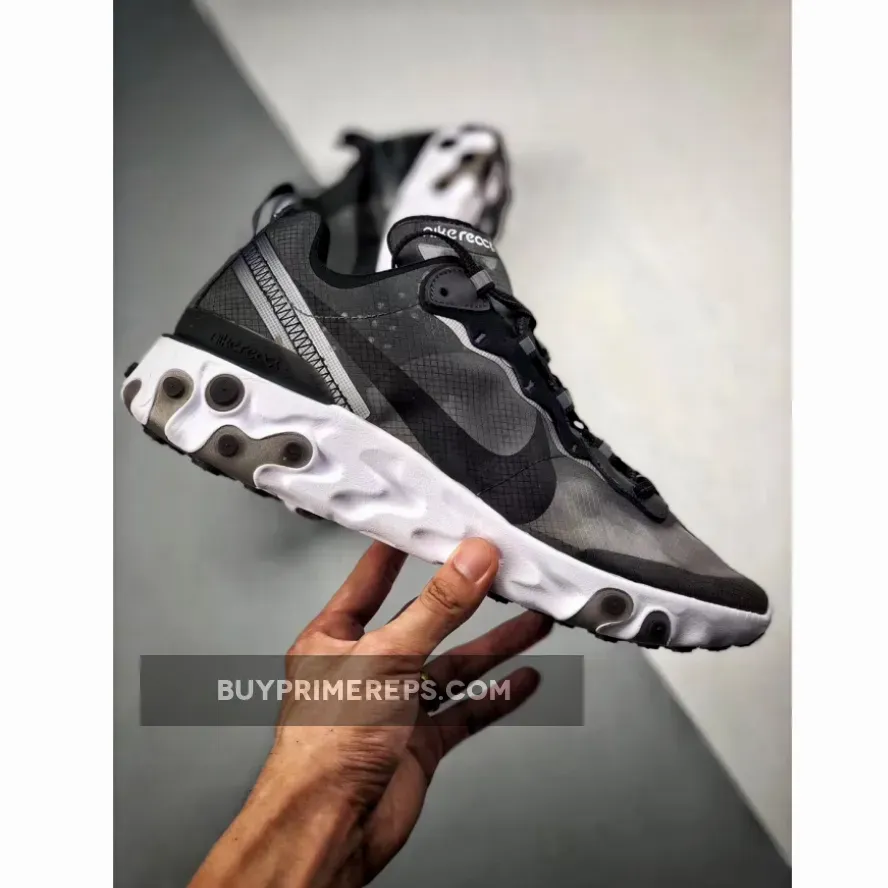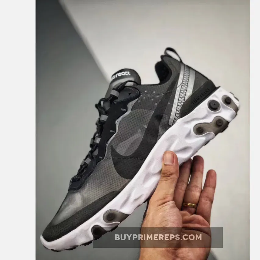 The upper of the Nike React Element 87 features a transparent mesh material that gives a deconstructed effect. Overlays that travel along the laces and heel provide additional support and structure to the shoe. The colorway of the sneaker is a mysterious combination of misty black, white, and grey, giving it a classic and versatile look.