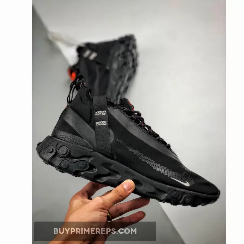 Constructed for comfort and durability, the React Runner Mid ISPA features a deconstructed water-resistant bootie atop Nike React Element 87 tooling. This combination of innovative materials and technology ensures that the sneaker is not only resilient in adverse weather conditions but also provides a smooth and comfortable stride. The React Element sole unit, in a sleek black color, adds to the overall appeal of the sneaker while enhancing its performance capabilities.