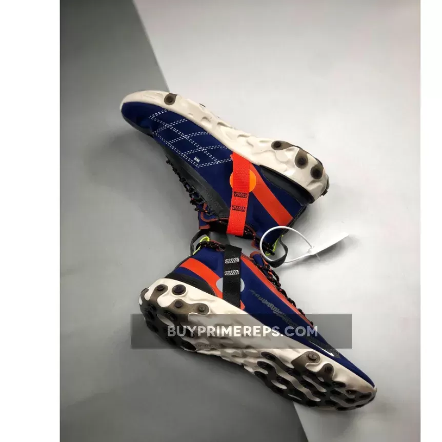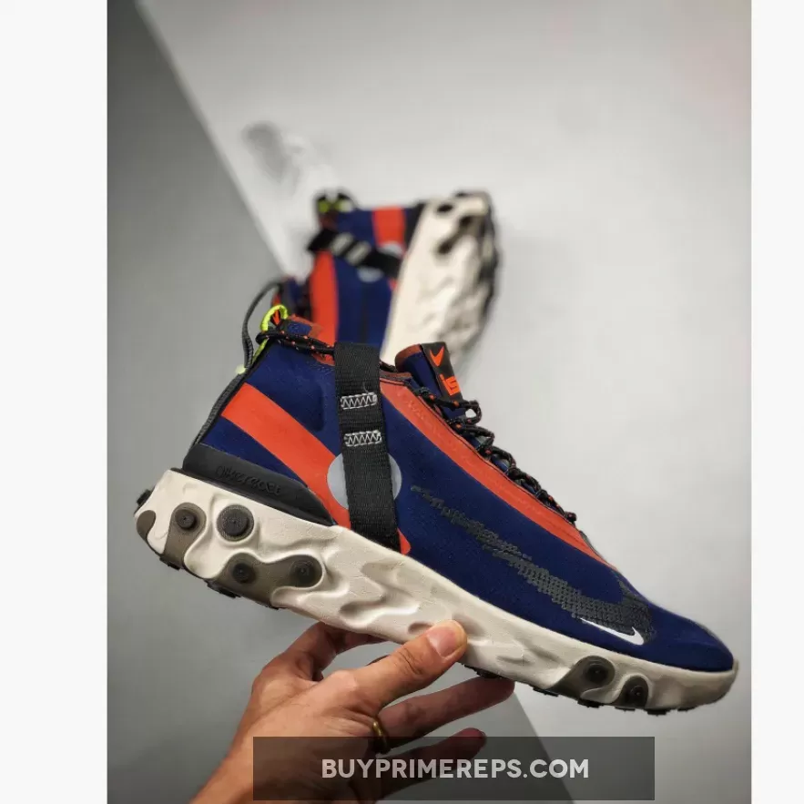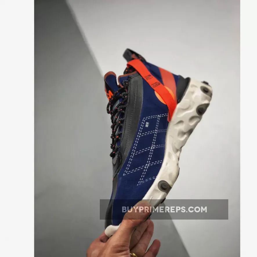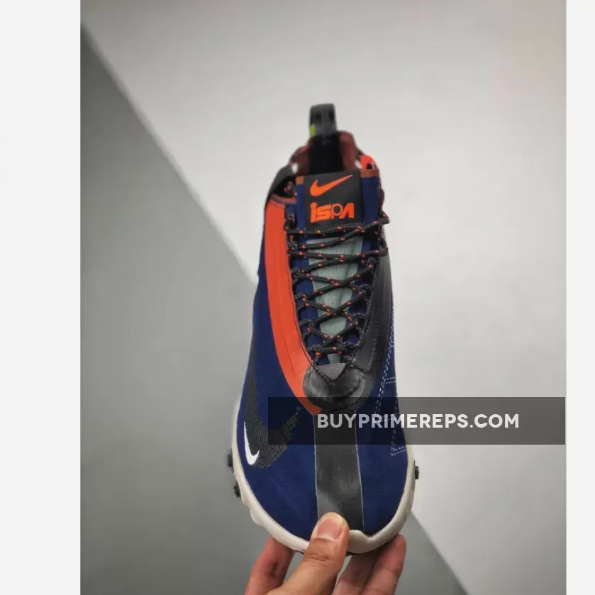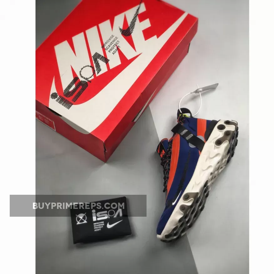The ISPA branding, which stands for “Improvise, Scavenge, Protect, Adapt,” is prominently displayed on the shoe. This acronym reflects the shoe’s focus on adaptability and durability, making it the perfect companion for outdoor adventures. The React Runner SP Mid ISPA Navy is designed to withstand whatever weather conditions you may encounter, ensuring that you stay comfortable and protected.