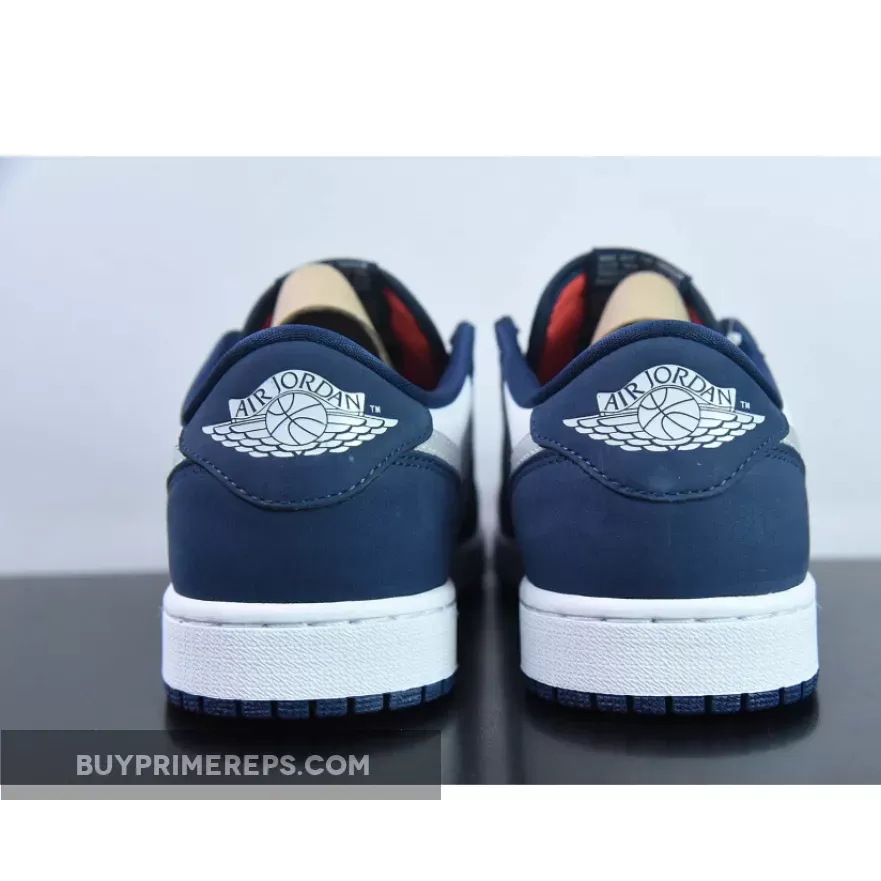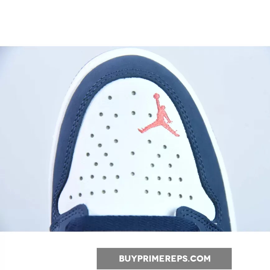 Crafted from premium leather and suede, the Air Jordan 1 Low “Midnight Navy” features a classic color scheme of Midnight Navy, White, Ember Glow, and Metallic Silver. The perforated toe box boasts an Ember Glow Jumpman logo, while Silver hints and Nike SB branding add subtle elegance.