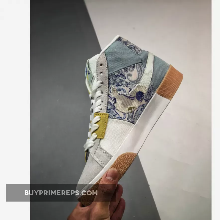 Aside from its striking appearance, the Nike SB Zoom Blazer Mid Premium Paisley Boarder Blue also offers exceptional comfort and performance. The Zoom Air unit in the heel provides responsive cushioning, while the padded collar and tongue offer a snug and supportive fit. The vulcanized construction of the shoe ensures excellent board feel and grip, making it ideal for skateboarding or everyday wear.
