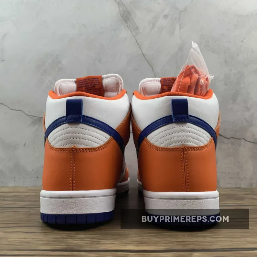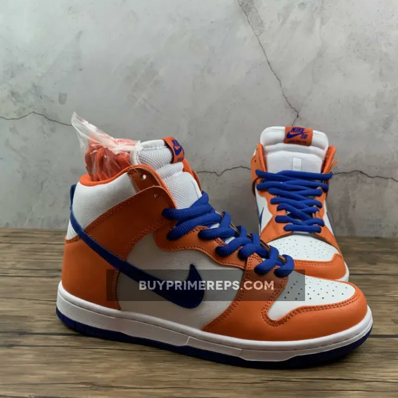 The shoe features an all-leather upper, providing a premium and durable construction that is perfect for skateboarding. The upper is dressed in a vibrant orange and blue color scheme, which has become synonymous with the Danny Supa collaboration. The bright orange hue dominates the majority of the upper, while the blue accents are seen on the laces, sidewall Swoosh, and outsole. This combination of colors creates a striking and eye-catching look that is sure to turn heads both on and off the skateboard.