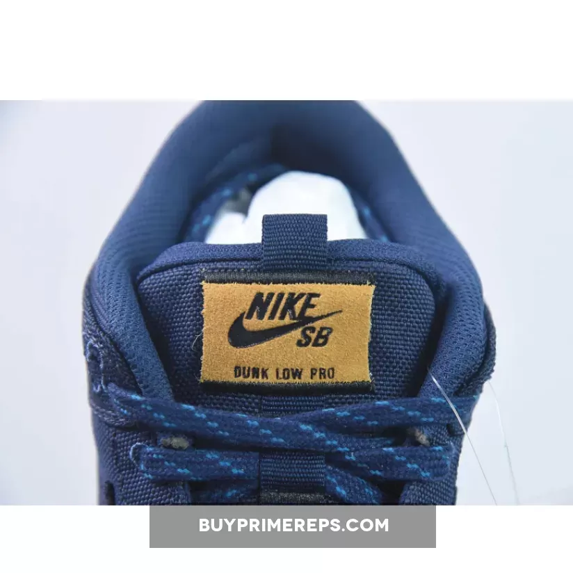The tongue tabs of the Nike SB Dunk Low Midnight Navy Desert Ochre are made from suede in the Desert Ochre color, with embossed Midnight Navy Nike SB branding. This attention to detail adds a touch of luxury to the shoe, while still maintaining its skateboarding roots.