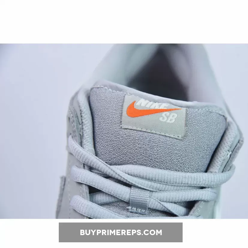 The standout feature of this sneaker is the pristine white Swooshes and heel tabs, which provide a striking contrast against the grey backdrop. The white accents add a touch of freshness and elevate the overall look of the shoe. Additionally, orange branding on the tongue tags adds a subtle pop of color, creating visual interest and enhancing the shoe’s unique appeal.