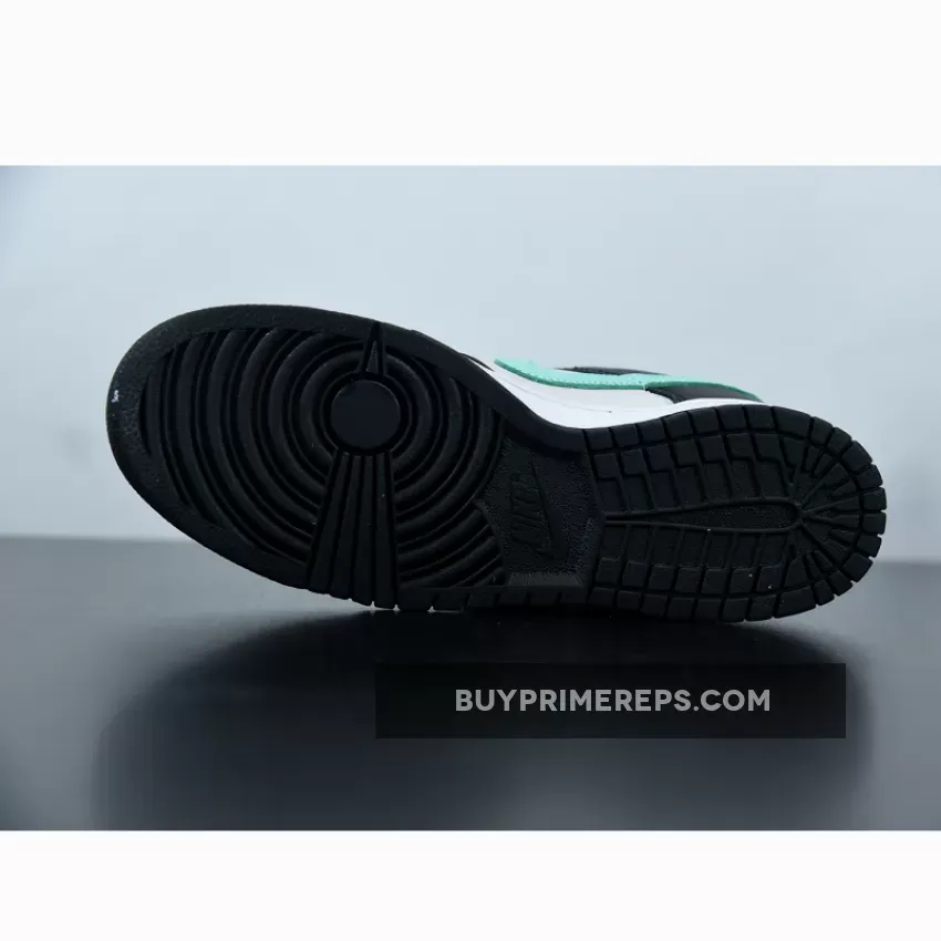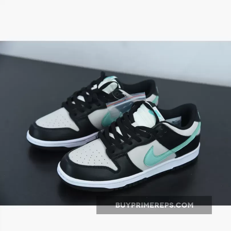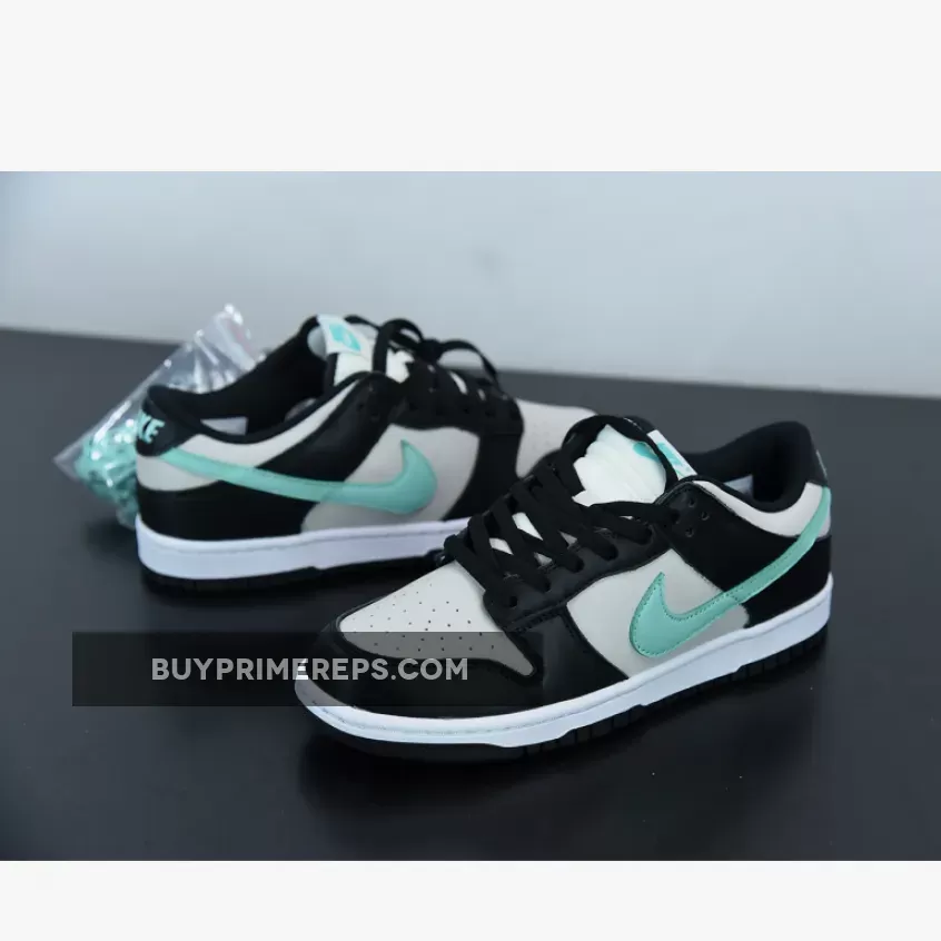 This Dunk Low features a sleek low-top silhouette, with a full leather upper adorned in black and smoke grey overlays. The iconic Nike Swoosh logo makes a bold statement, shooting across the lateral and medial side panels in a vibrant Tiffany Blue colorway. The Swoosh logos come together at the heel panel, where additional branding details can be found. The combination of black, grey, and Tiffany Blue creates a visually striking contrast that is sure to turn heads.