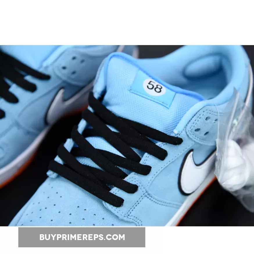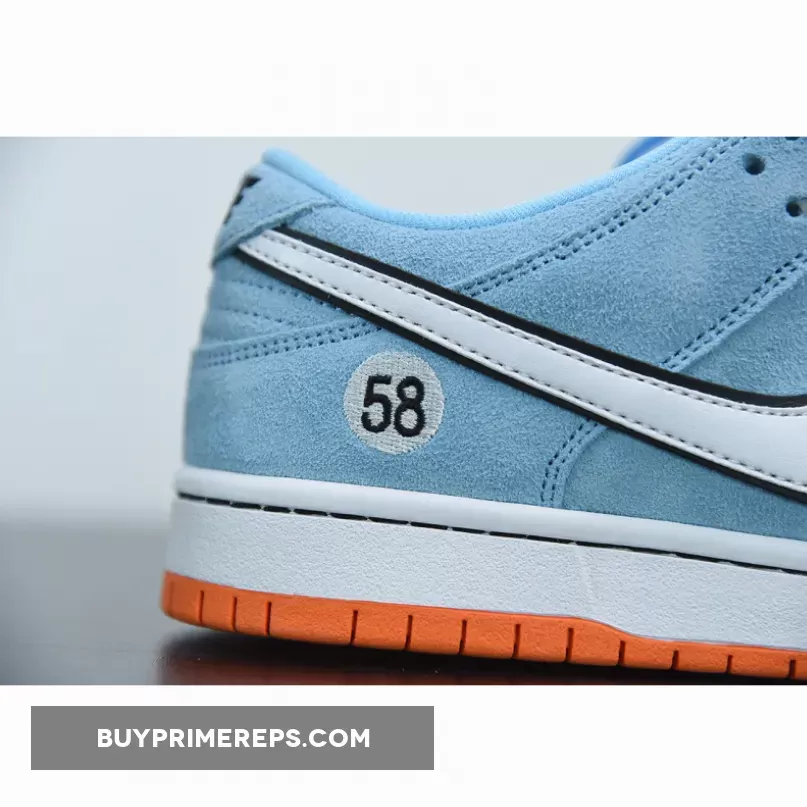 Introducing the Nike SB Dunk Low Club 58, a highly anticipated release that is set to take the sneaker world by storm. With a bold colorway inspired by the vintage Ford GT40 Le Mans sports car from 1968, this pair is sure to turn heads wherever you go. The upper of the shoe is constructed with a vibrant azure blue suede, giving it a luxurious and eye-catching look. The iconic Nike Swoosh logo is featured on the sides in white, outlined in black for a striking contrast. The Club 58 insignia, a nod to Nike’s skate group formed by Nike SB employees, is placed on the lateral ankle and tongue tab, adding a unique touch to the design.