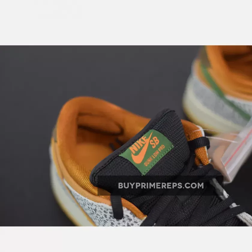 In addition to its stylish appearance, the Nike SB Dunk Low Safari Kumquat is also designed with functionality in mind. The padding in the tongue provides extra protection for the foot, whether you’re skateboarding or simply going about your daily activities. The textured tread ensures excellent grip, making these sneakers suitable for any terrain.