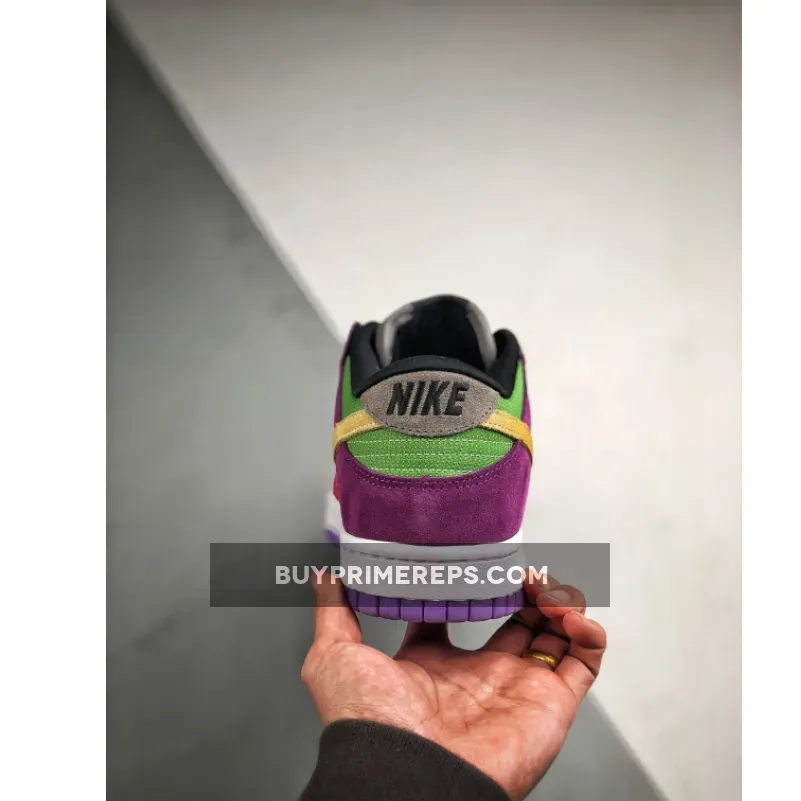 The Nike Dunk Low “Viotech 2019” is not only visually striking, but it also offers comfort and durability. The shoe features a white rubber midsole that provides cushioning and support for all-day wear. The purple outsole adds a final touch of character to the design, perfectly complementing the vibrant upper.