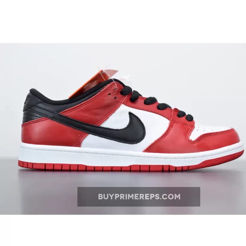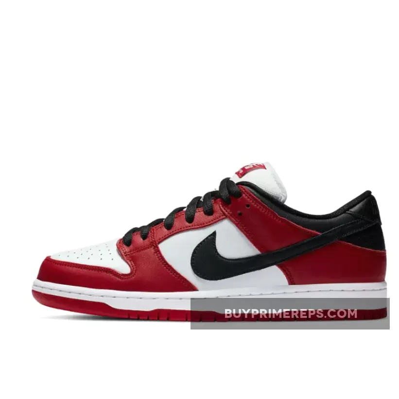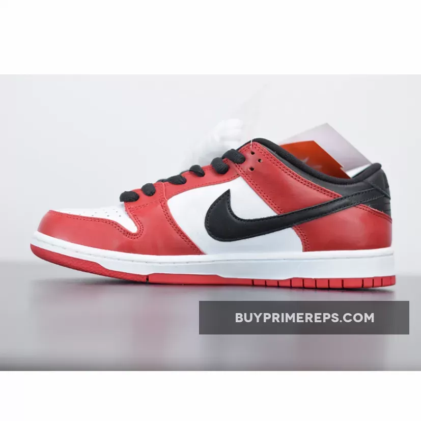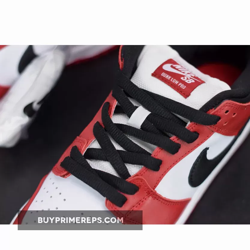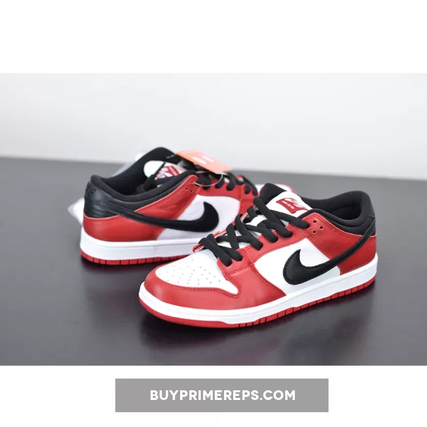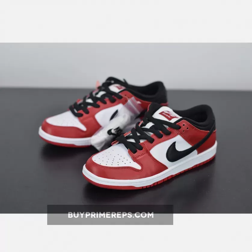 Crafted with premium leather, the uppers of the Nike SB Dunk Low Chicago feature a combination of white, red, and black. The classic Chicago Bulls color palette is perfectly executed, with the white serving as the base, while the overlays, tongue label, and rubber outsole are adorned in vibrant red. Black accents on the laces, Swooshes, and heel complete the iconic Chicago look. The design perfectly captures the essence of the Air Jordan 1 Chicago, making these SB Dunks a must-have for sneaker enthusiasts and collectors alike.