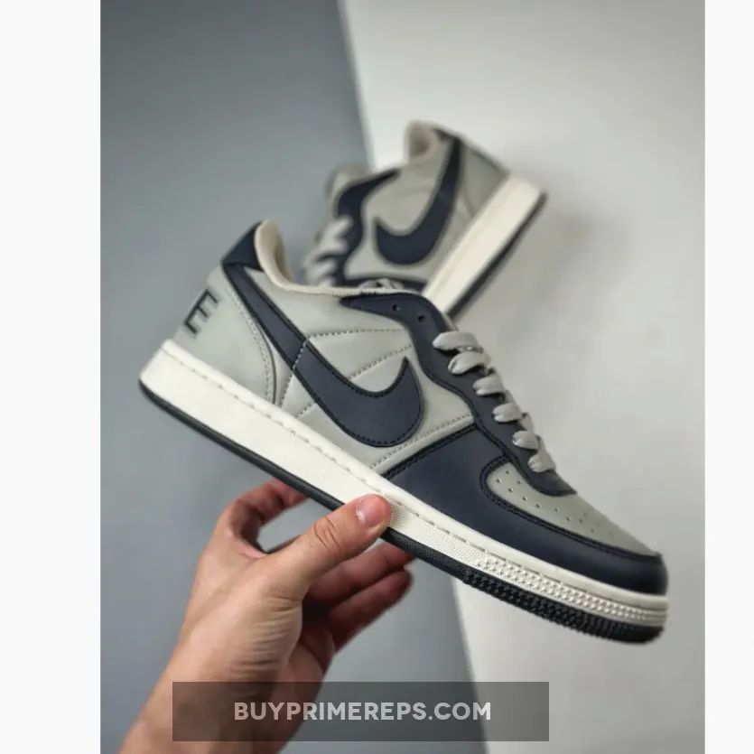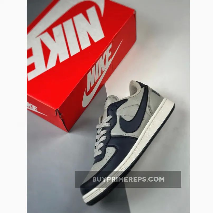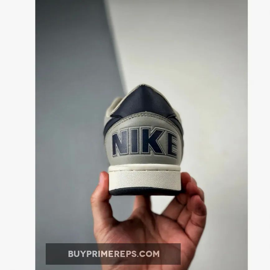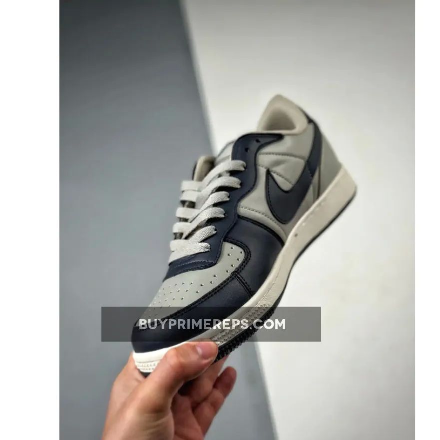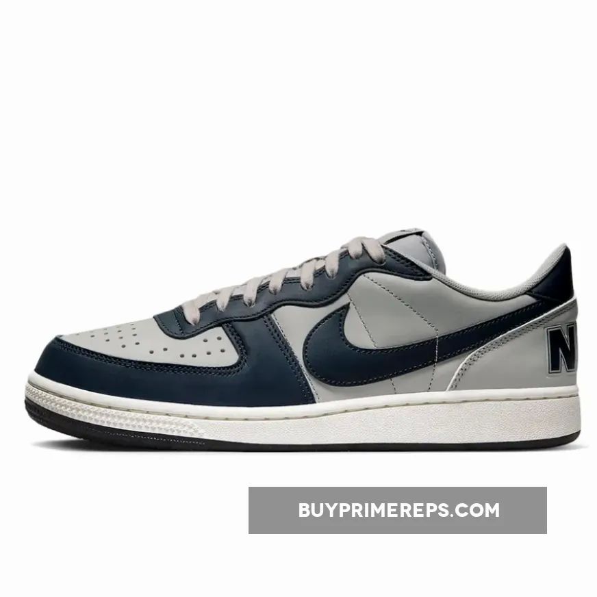 The Nike Terminator Low “Georgetown” features a full leather upper that gives it a luxurious look and feel. The grey base is complemented by dark obsidian overlays, creating a striking contrast that adds depth and dimension to the shoe. The Swoosh branding on the sides and the “NIKE” branding on the heel are also done in dark obsidian, tying the whole color scheme together.