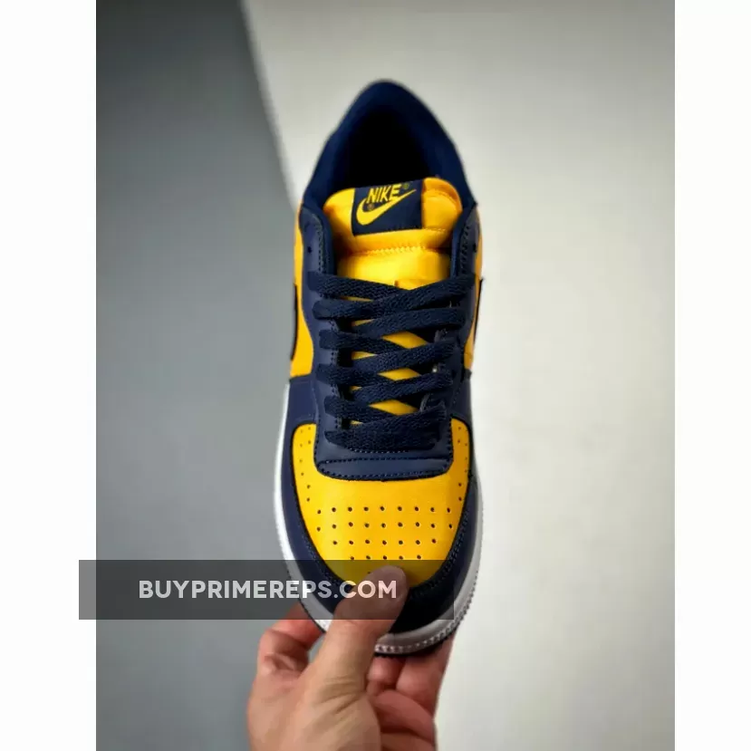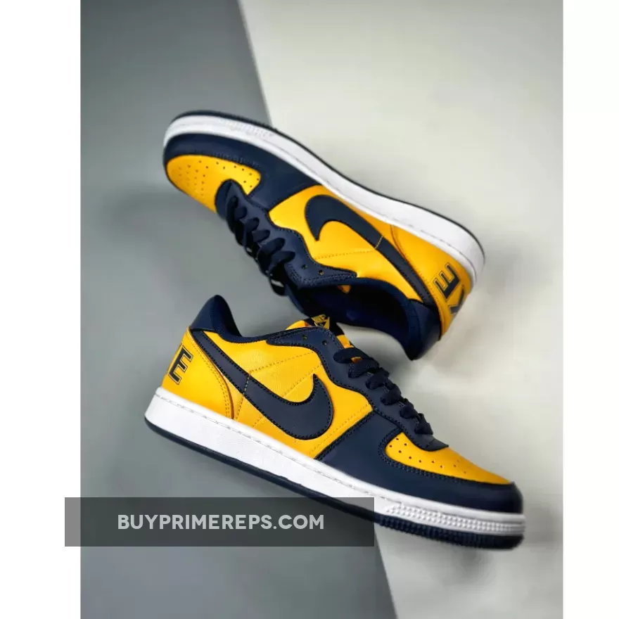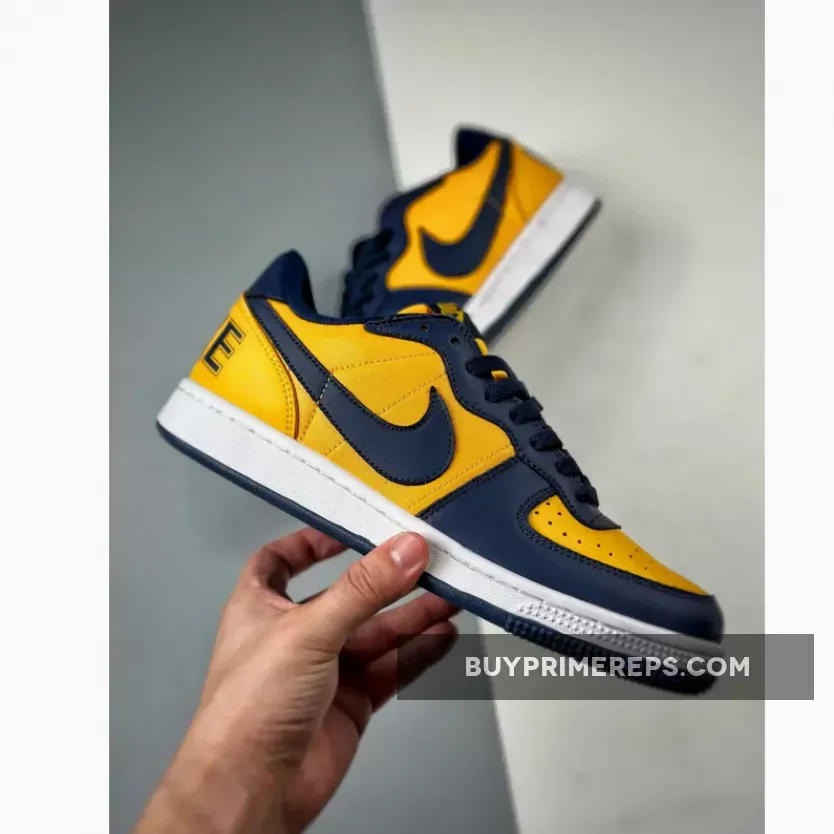 The Nike Terminator Low Michigan FJ4206-700 is a stylish and eye-catching sneaker that showcases the perfect blend of vintage design and collegiate style. With its striking University Gold and Navy colorway, this shoe is sure to turn heads wherever you go.