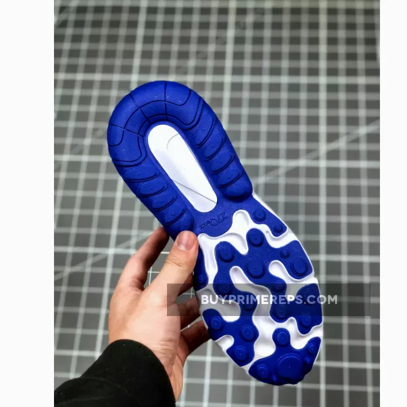 One of the standout features of the Nike Air Max 270 React is its midsole technology. The shoe utilizes React foam technology in the forefoot, providing cushioning and responsiveness with every step. Additionally, an Air Max unit is located in the heel for added stability and support. The visible Air bubble in the heel is tinted blue, adding a unique and eye-catching element to the shoe.