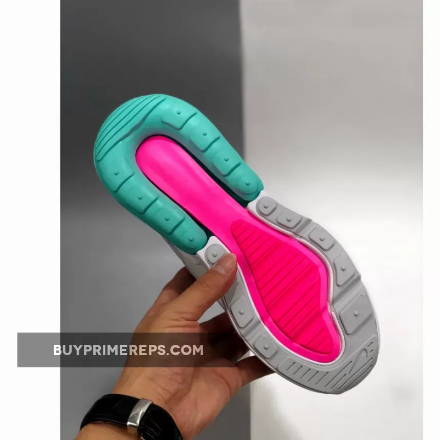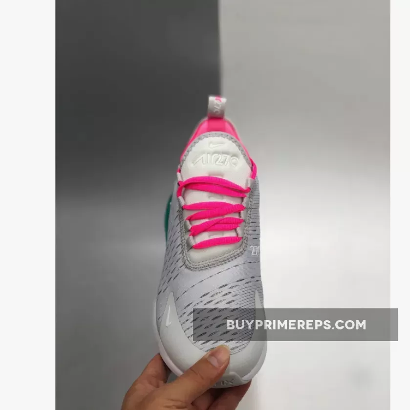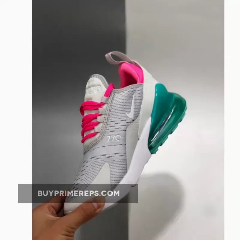 Introducing the Nike Air Max 270 Pure Platinum Pink Blast, a vibrant and eye-catching colorway that is sure to turn heads. This latest iteration of the popular Air Max 270 silhouette features a clean and minimalistic design with a light grey mesh upper. The mesh construction not only provides breathability but also adds a lightweight and flexible feel to the sneaker.