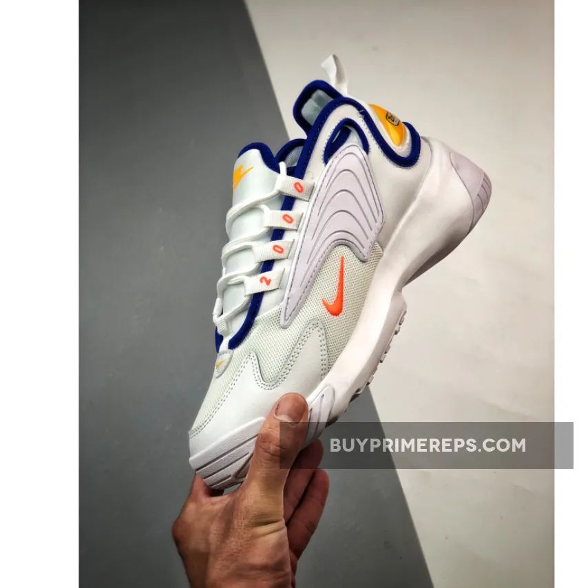 The Nike Zoom 2K Platinum Tint is a stylish and versatile shoe that combines a minimal aesthetic with pops of color to create a unique and eye-catching design. This new colorway from Nike features a clean white base, with mesh and rubber accents adding texture and dimension to the shoe. The sidewalls of the Nike Zoom 2K showcase a waved pattern that adds a touch of visual interest.