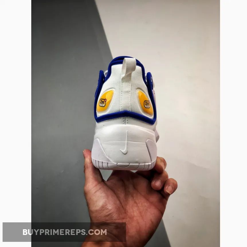 One of the standout features of the Nike Zoom 2K Platinum Tint is the bold blue piping that wraps around the collar of the shoe. This vibrant blue hue adds a pop of color and adds a modern and dynamic element to the overall design. In addition to the blue piping, the shoe also features red Zoom branding on the eyelets and yellow branding on the heel and tongue, further enhancing the visual appeal of the shoe.