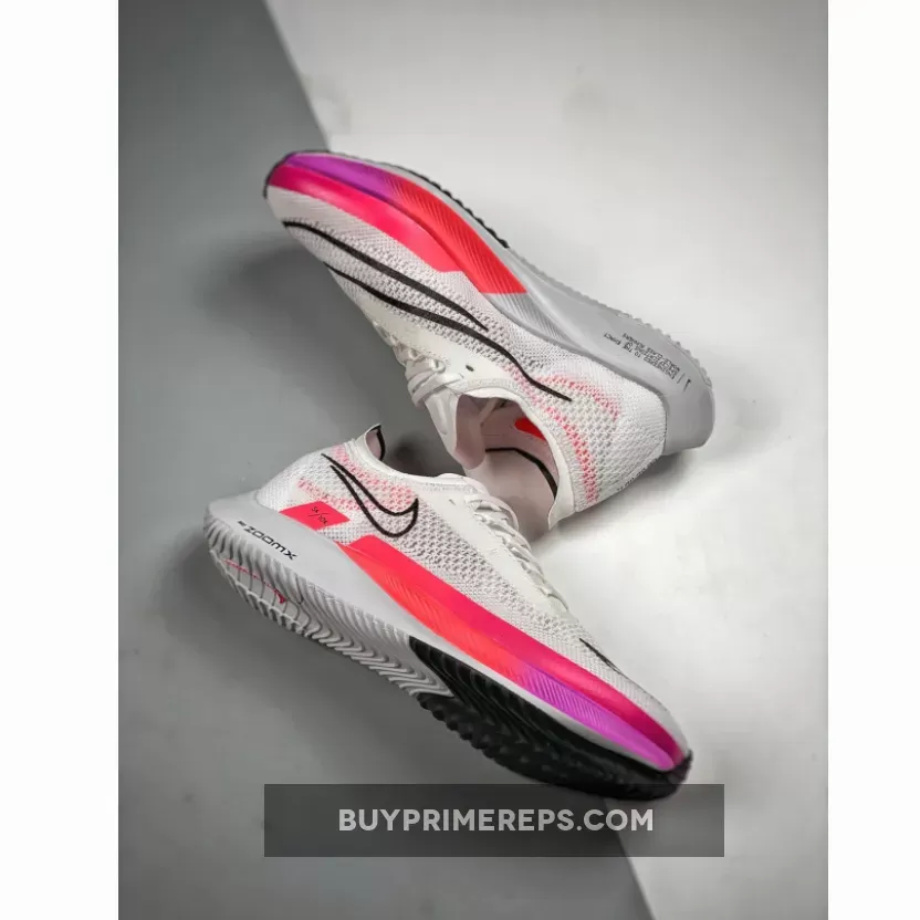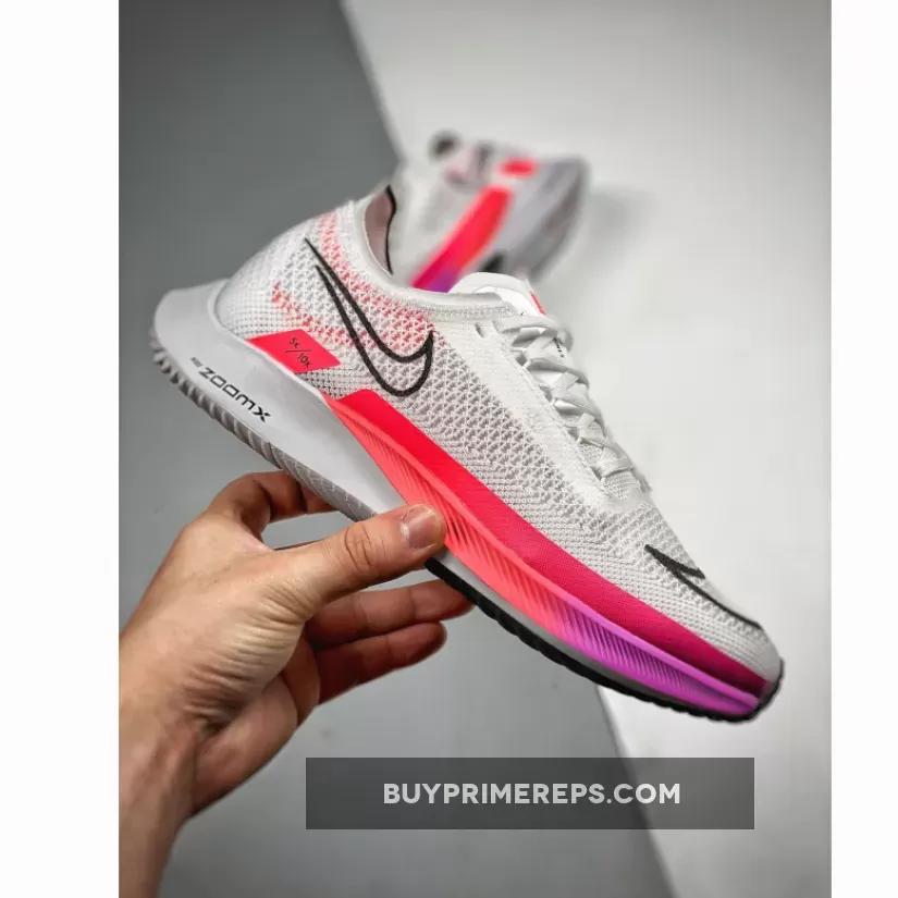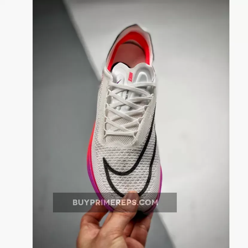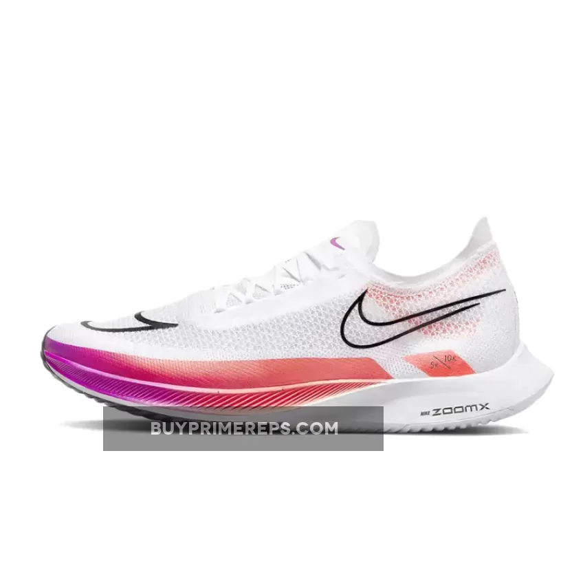 In terms of design, the Streakfly showcases a stunning gradient colorway known as “Sunset”. The upper is predominantly white, with a vibrant mix of crimson and violet tones at the forefoot. This eye-catching color combination adds a pop of excitement to the shoe, while the black Swoosh branding provides a sleek contrast. Not only does the Streakfly perform at a high level, but it also looks stylish and modern.
