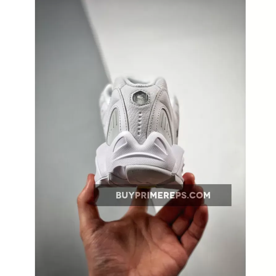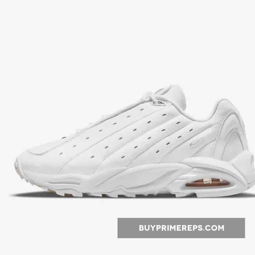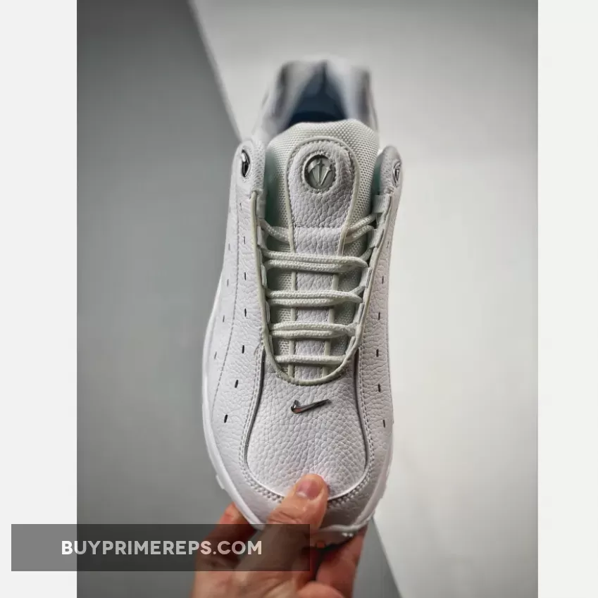The Hot Step Air Terra trainers feature a sleek and modern design. They are crafted with tumbled leather textiles in a clean white colorway, with slanted panels from heel to toe for a luxurious quilting effect. The white color dominates the shoe, giving it a clean and sophisticated look. However, there are some eye-catching details that add a touch of flair. The mini Swoosh logo on the lateral heels and the eyestays have a chromatic silver finish, creating a striking contrast against the white backdrop.