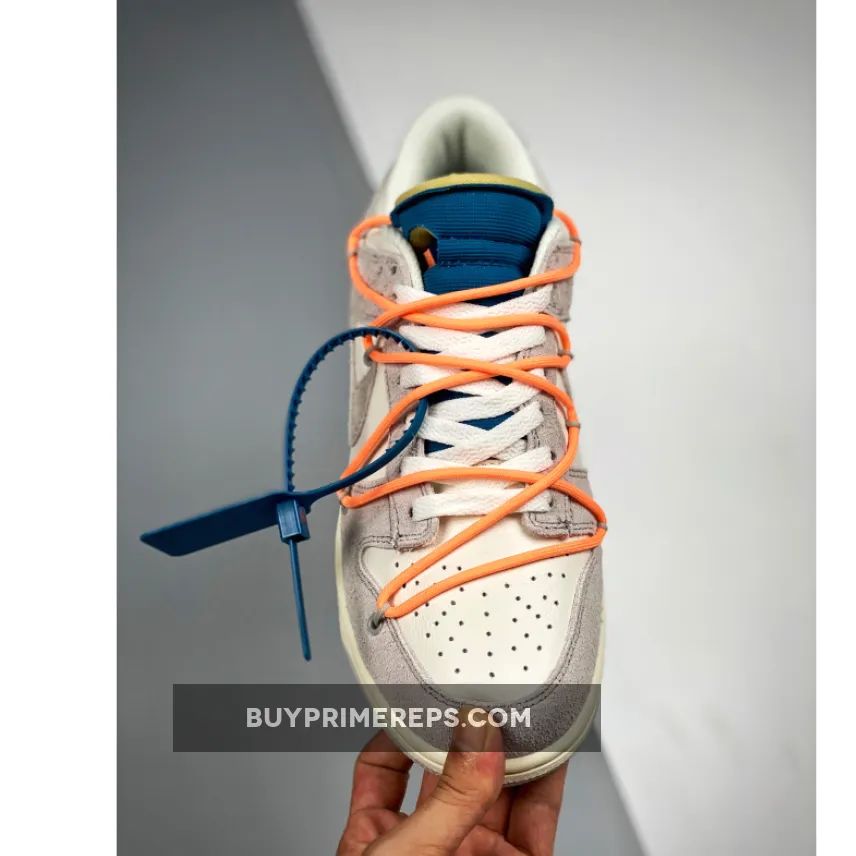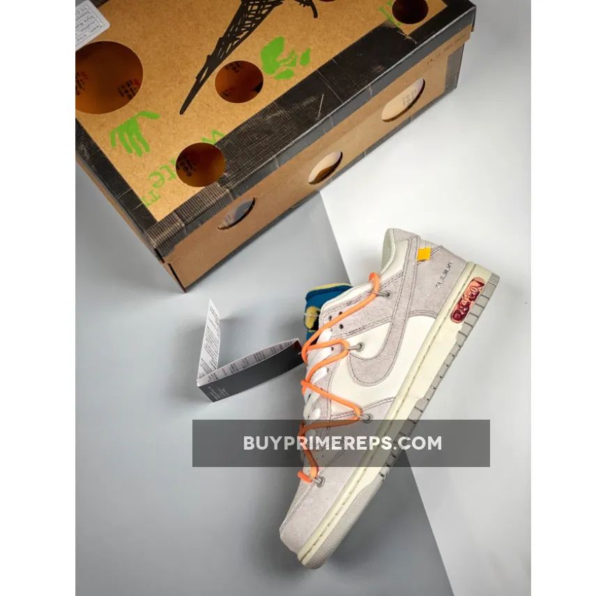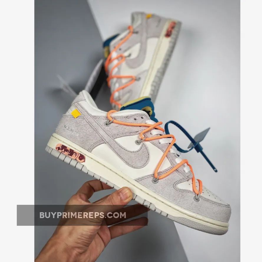 The Off-White x Nike Dunk Low “19 of 50” Grey White is a highly anticipated sneaker collaboration between streetwear brand Off-White and sportswear giant Nike. Part of the “Dear Summer” collection, this shoe is a follow-up to Virgil Abloh’s first Nike Dunk collaboration from 2019.