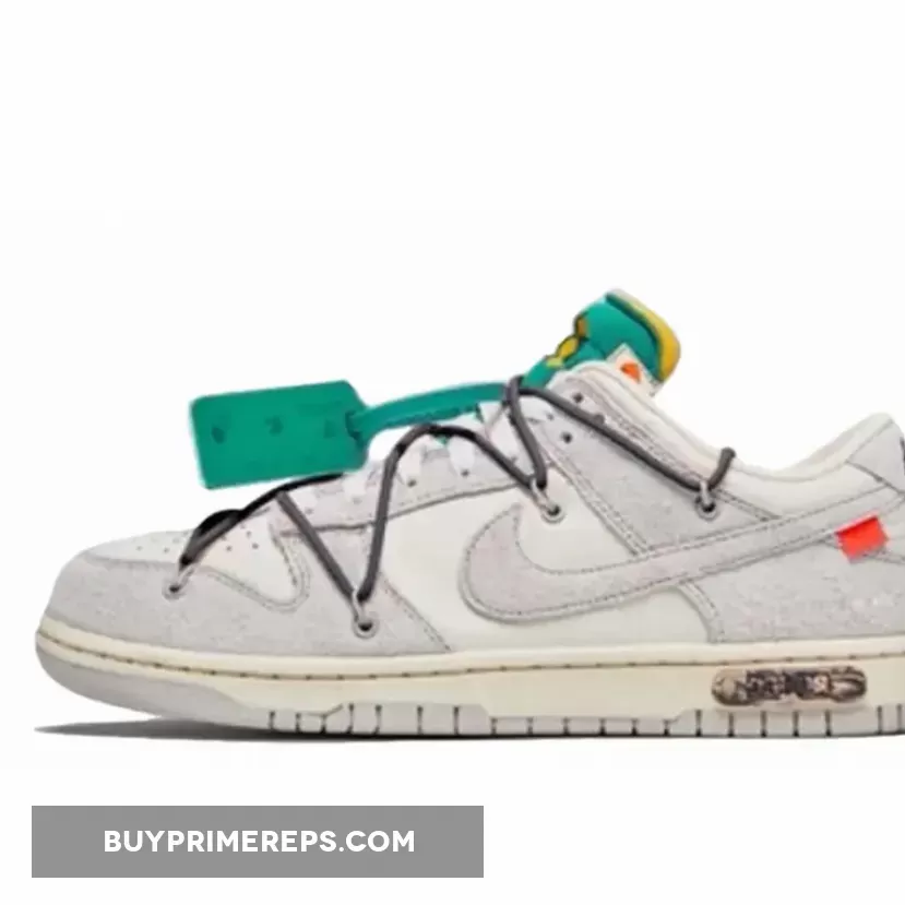 The Off-White x Nike Dunk Low ‘Dear Summer’ sneakers are not just aesthetically pleasing, but also carefully crafted with high-quality materials. The combination of white leather and grey suede gives the sneakers a luxurious feel, while the attention to detail in the design is unparalleled.