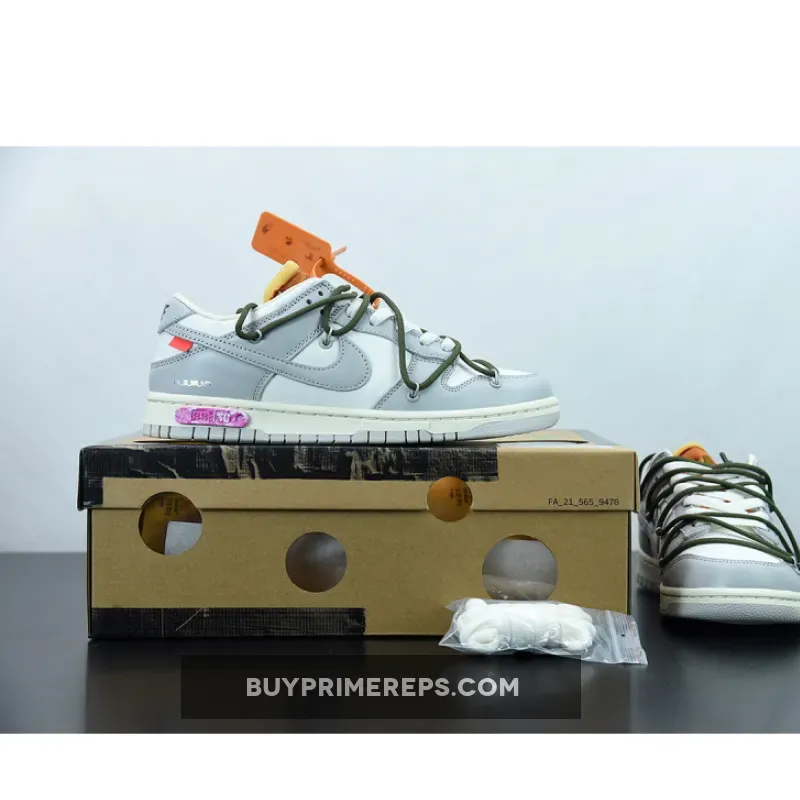 Overall, the Off-White x Nike Dunk Low ’22 of 50 Sail Neutral Grey Medium Olive’ is a highly coveted and limited edition release that exemplifies Virgil Abloh’s unique design perspective. With its meticulous attention to detail, distinctive features, and exclusive numbering, this sneaker is sure to be a prized addition to any collection.