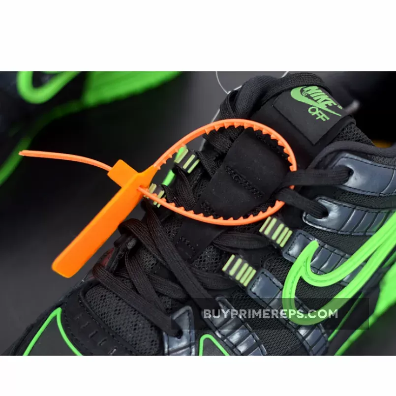 One of the standout features of this collaboration is the use of bold branding elements. The iconic Swoosh logo is featured on both sides of the shoe, with an eye-catching outline in Green Strike. This is a signature Off-White touch and adds a unique and recognizable element to the design. The shoe also features the Off-White zip-tag attached to the laces, as well as the brand’s distinctive layered and deconstructed aesthetic.