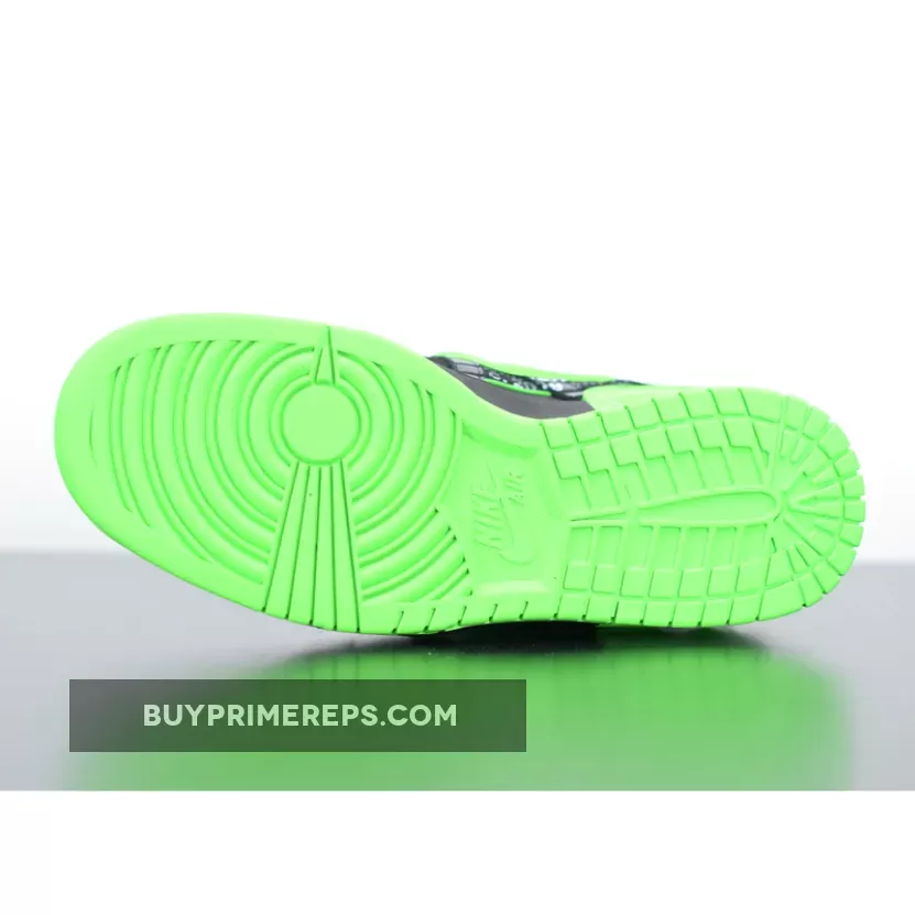 The Off-White x Nike Rubber Dunk Green Strike Black is a highly anticipated collaboration between Off-White and Nike. Known for their cutting-edge designs and boundary-pushing aesthetics, this collaboration is set to be another hit in their long-standing partnership.