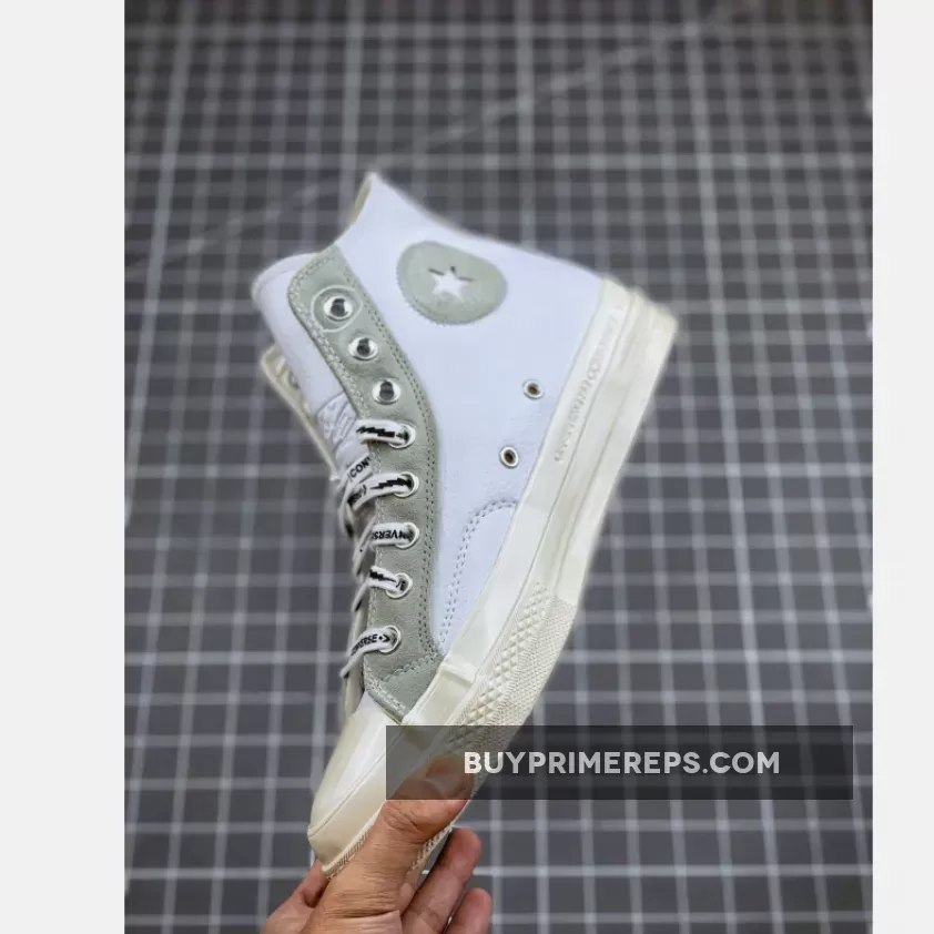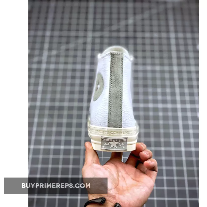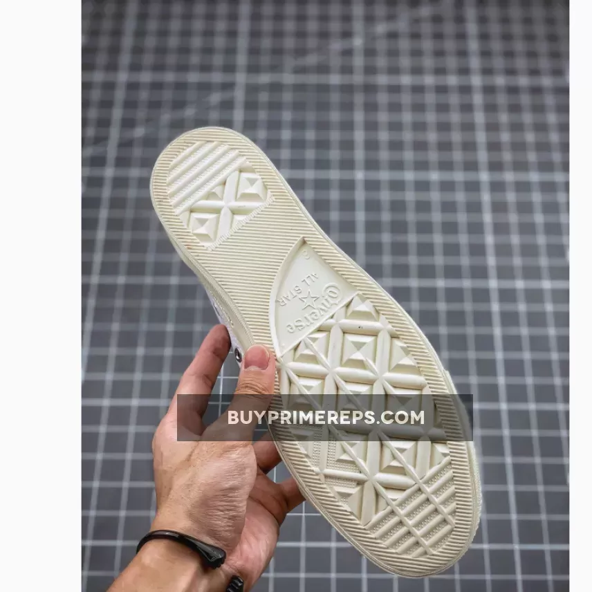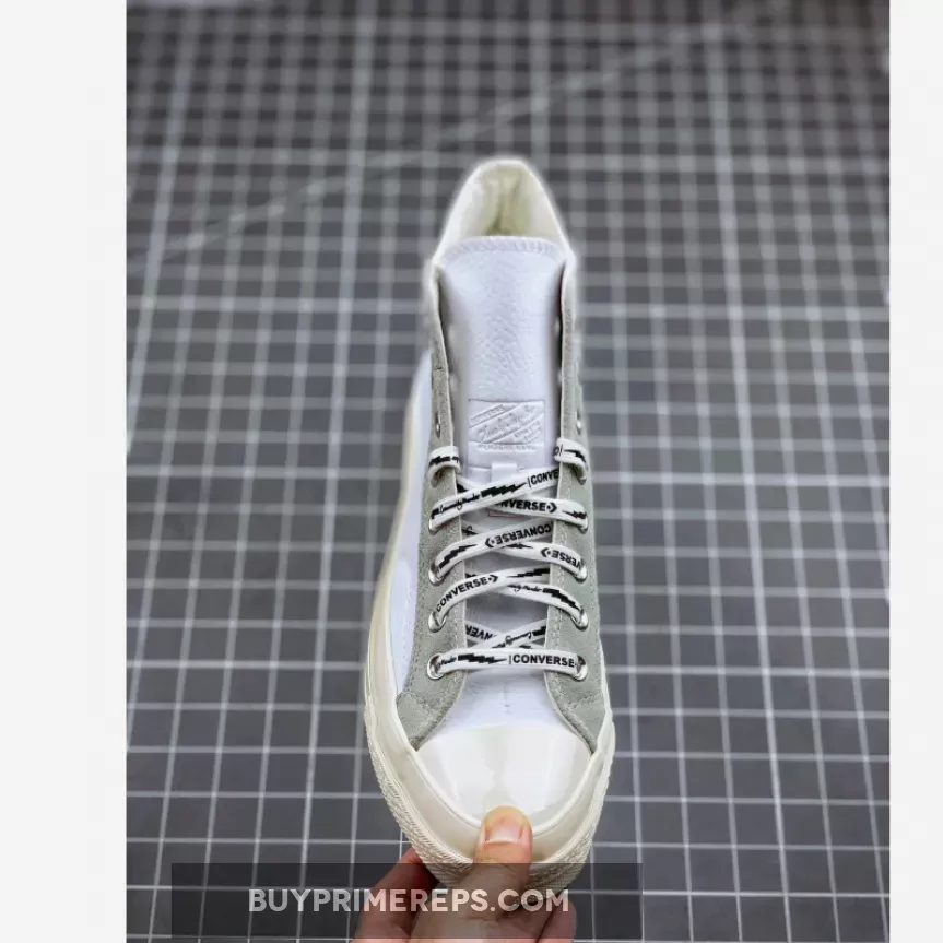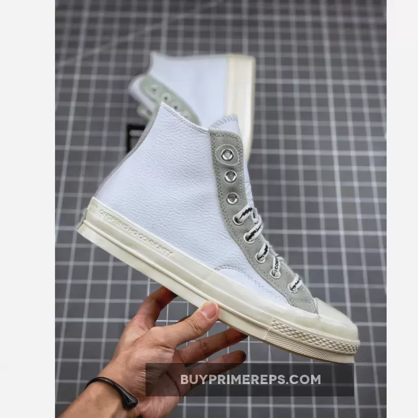 The sneakers feature a low-key grey suede upper, giving them a subtle and sophisticated look. Premium details can be found throughout the shoe, such as Converse’s signature star logo on the medial side and Offspring Community branded laces. These small touches add to the overall premium aesthetic of the sneakers.