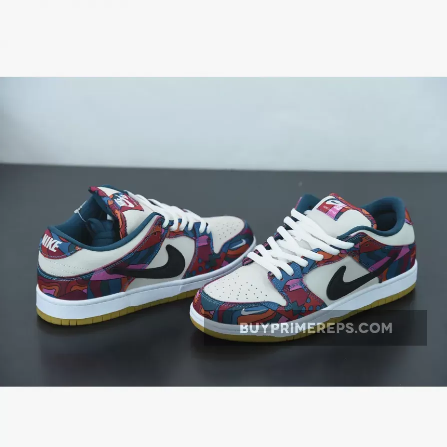 Overall, the Parra x Nike Dunk Low SB is a standout sneaker that combines the artistic vision of Piet Parra with the classic design of the Nike Dunk. With its vibrant colors, unique abstract-print textile, and Olympic-inspired details, this shoe is sure to turn heads and make a statement. Whether you’re a fan of skateboarding, art, or just great sneakers, this is one release you won’t want to miss.