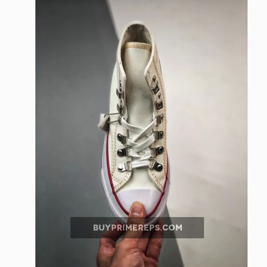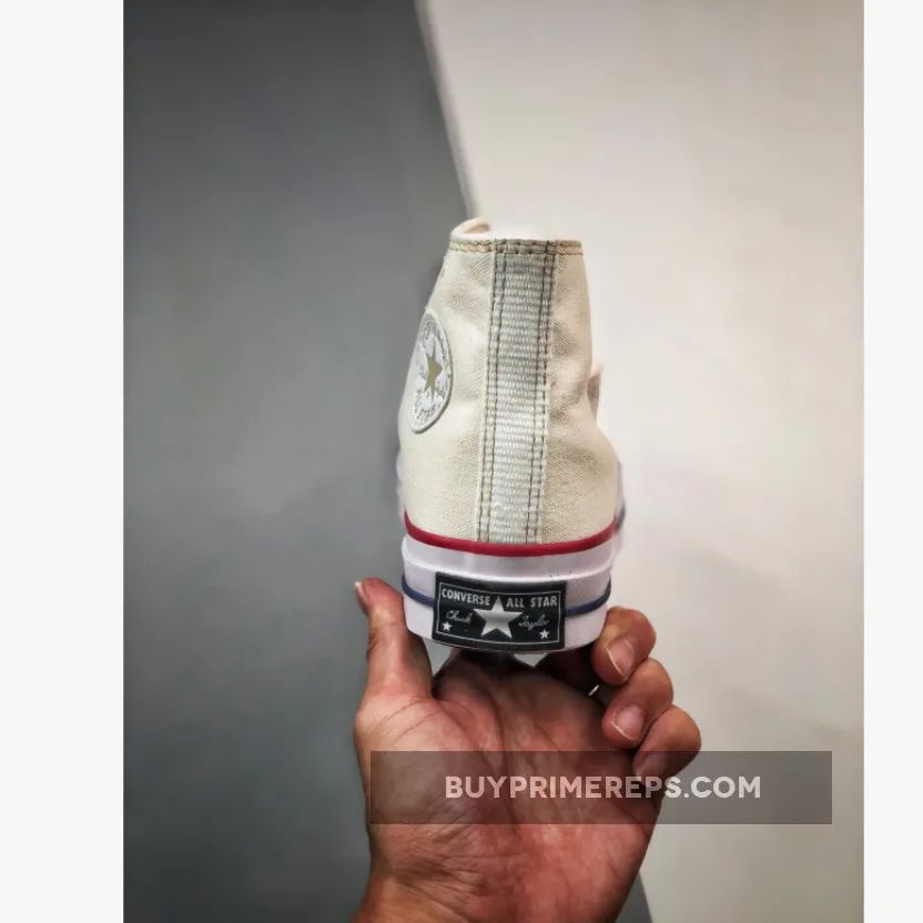 The colorway of the Chuck 70 is a combination of white, Irish cream, and navy, giving the sneaker a clean and versatile look. The white base provides a neutral canvas, while the Irish cream and navy accents add depth and contrast. This color scheme allows the sneaker to be easily paired with a variety of outfits, whether you’re going for a casual or more dressed-up look.