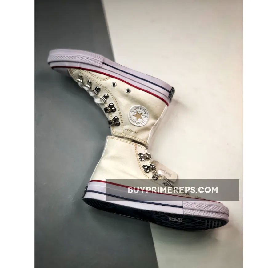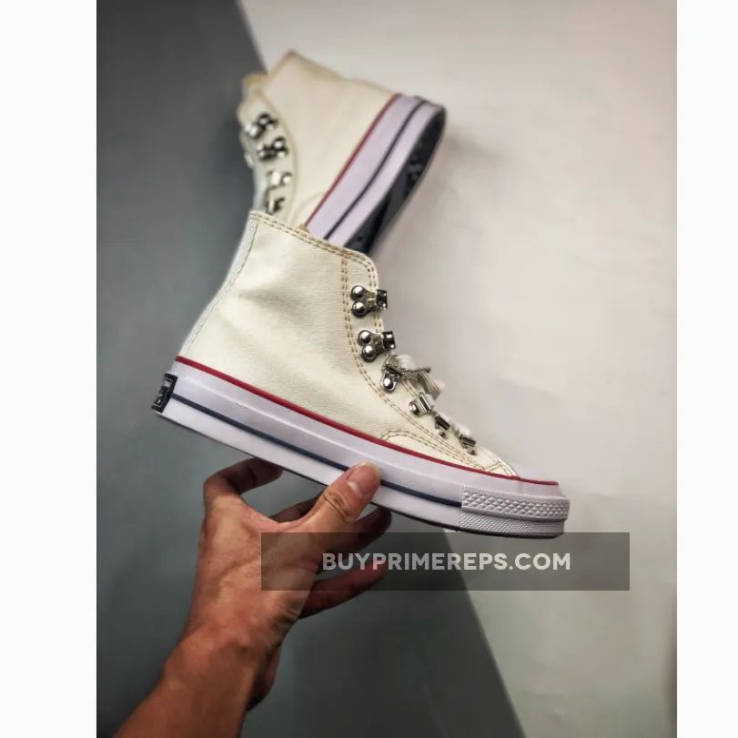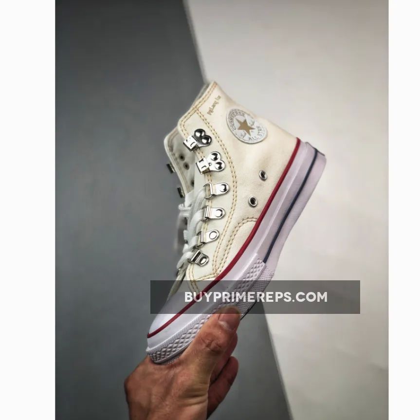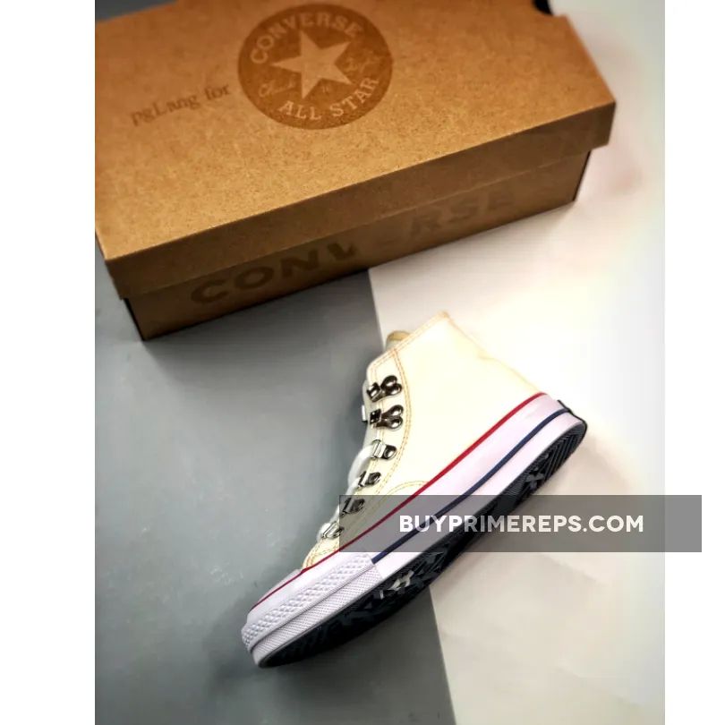 Overall, the pgLang x Converse Chuck 70 White/Irish Cream-Navy is a standout sneaker that combines the timeless appeal of the Chuck 70 with the creative vision of pgLang. With its subtle yet distinctive details, this collaboration is a testament to the power of storytelling and the ability of fashion to transcend boundaries. Whether you’re a fan of Kendrick Lamar, Converse, or simply appreciate unique and thought-provoking design, this sneaker is sure to make a statement.