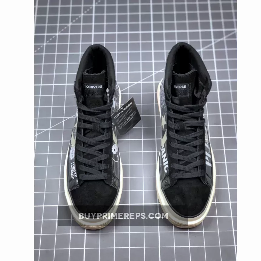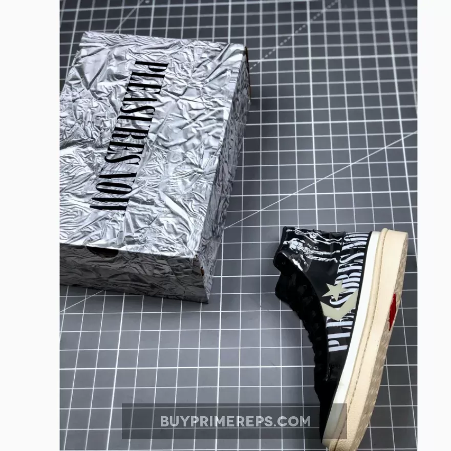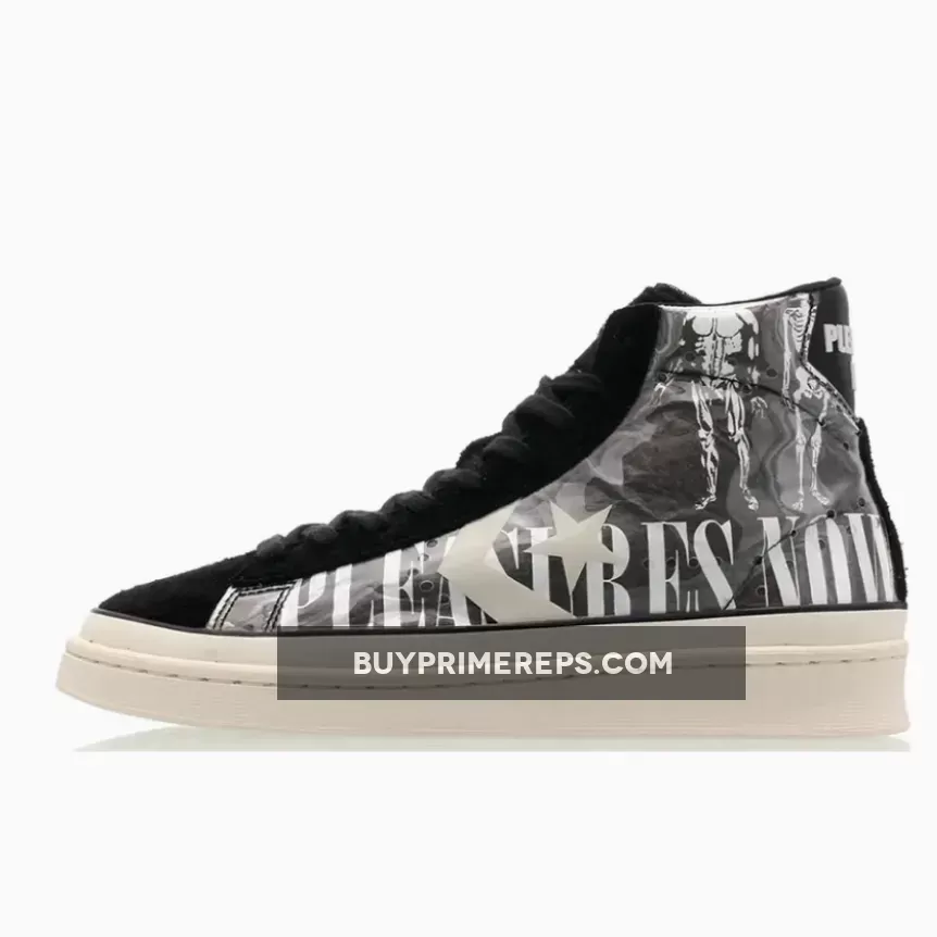 The Pleasures x Converse Pro Leather Mid Black Grey is not only a stylish sneaker, but it also pays homage to the punk rock aesthetic and the rebellious spirit of both Pleasures and Converse. With its bold graphics, layered detailing, and unique construction, this collaboration is a must-have for sneaker enthusiasts and fans of both brands.