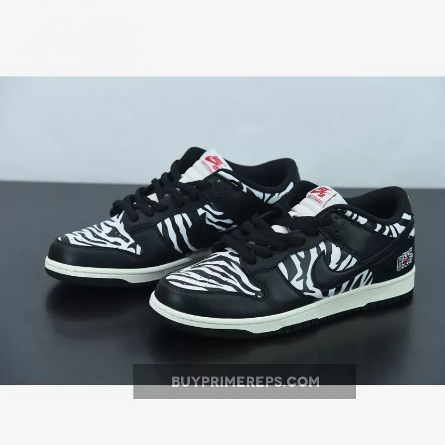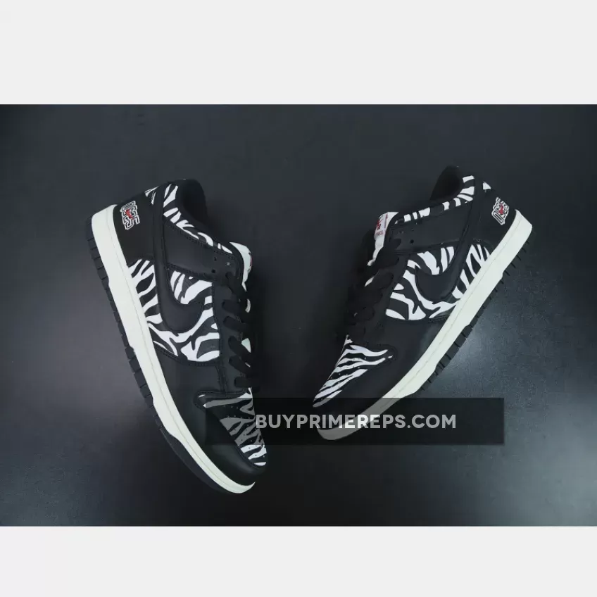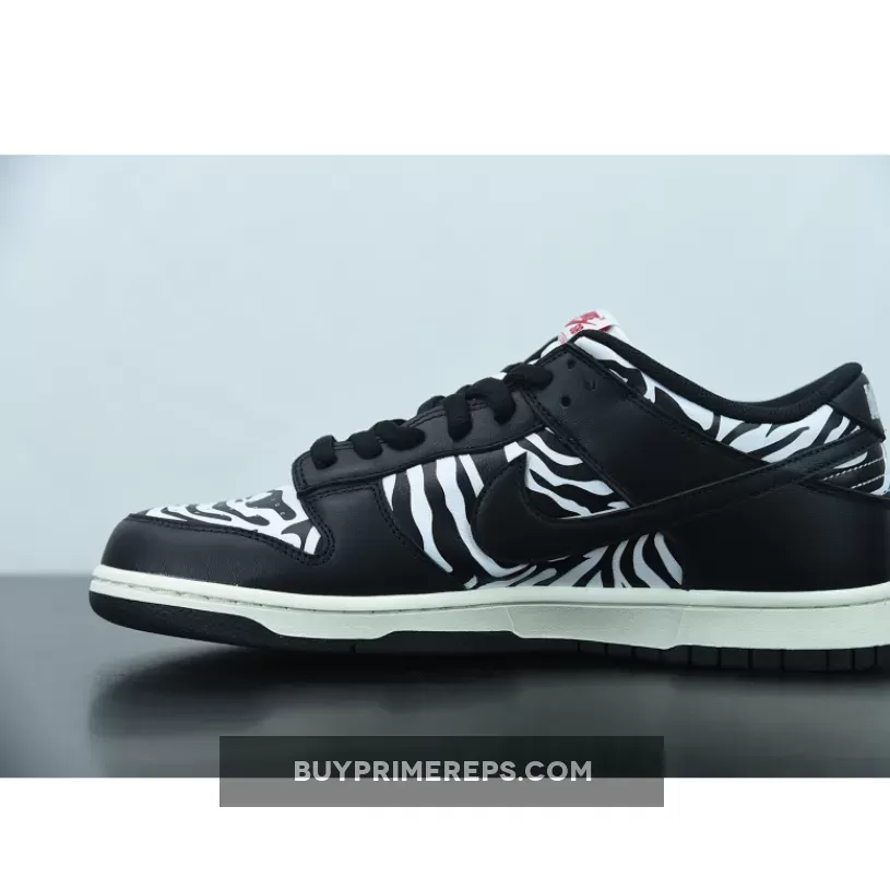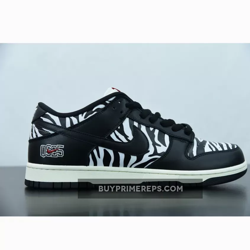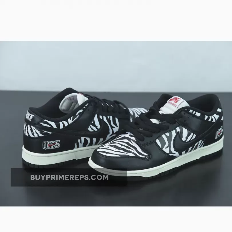 The Quartersnacks x Nike SB Dunk Low “Zebra Cakes” is not just about aesthetics. It also offers exceptional comfort and performance, making it suitable for skateboarding or everyday wear. The shoe features a sail midsole, providing cushioning and support, while the black rubber outsole ensures traction and durability on various surfaces.