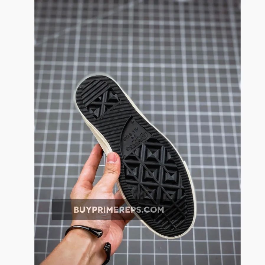 Converse’s star branding remains on the inner side of the shoe, adding a touch of authenticity and staying true to the brand’s heritage. The clean and crisp look is completed with white laces, providing a subtle contrast and maintaining the overall sleek appearance of the sneaker.