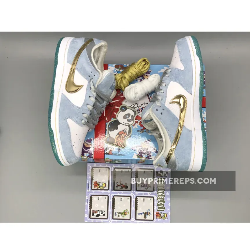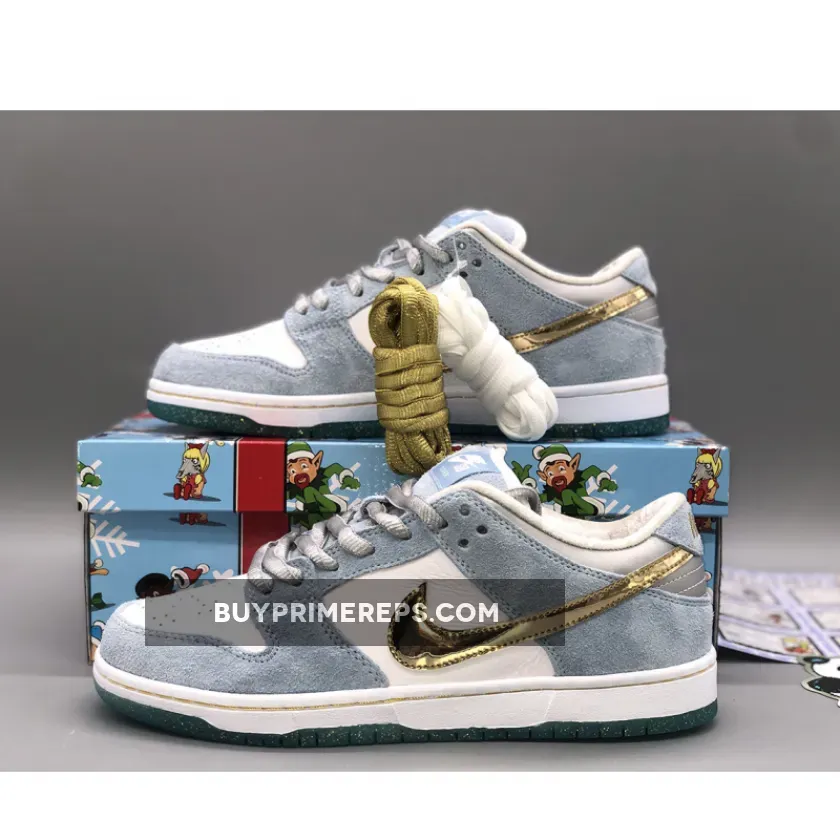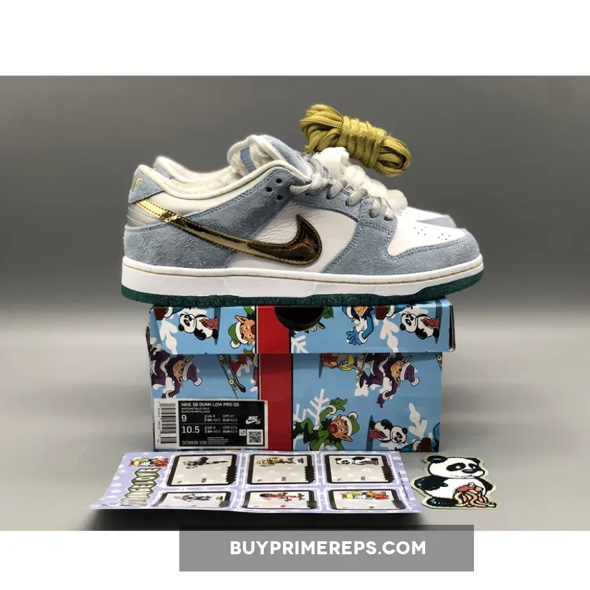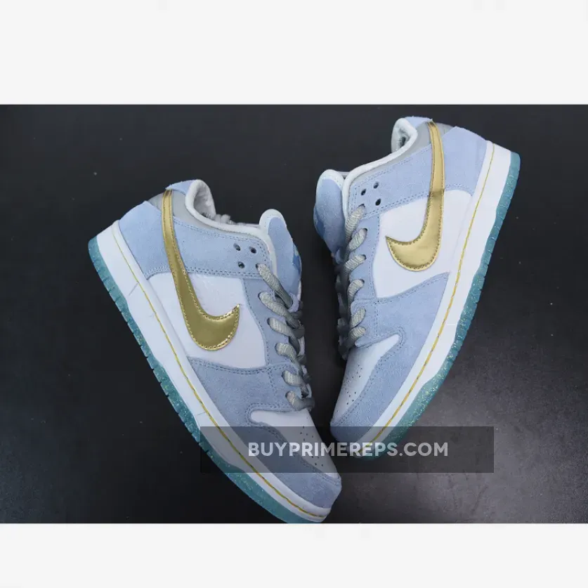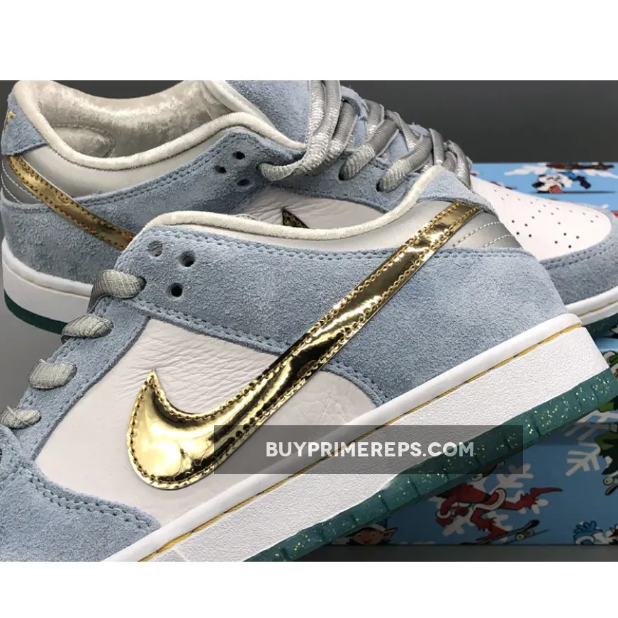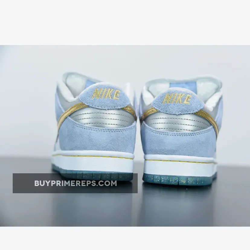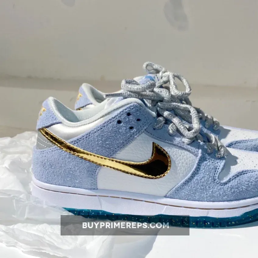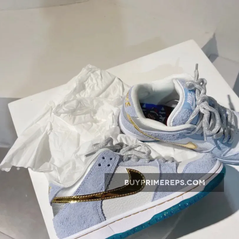 Overall, the Sean Cliver x Nike SB Dunk Low is a highly anticipated collaboration that combines Cliver’s unique artistic style with the iconic SB Dunk silhouette. With its clean colorway, metallic gold accents, and distinct details, this shoe is sure to be a standout in any sneaker collection. Whether you’re a skateboarder or a sneaker enthusiast, this collaboration is not to be missed.