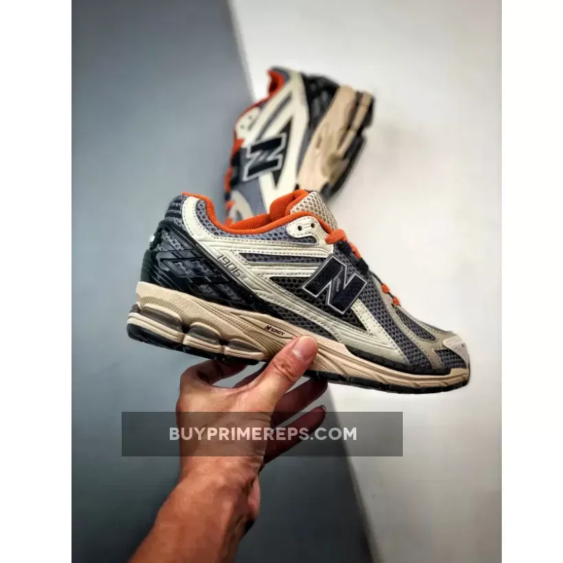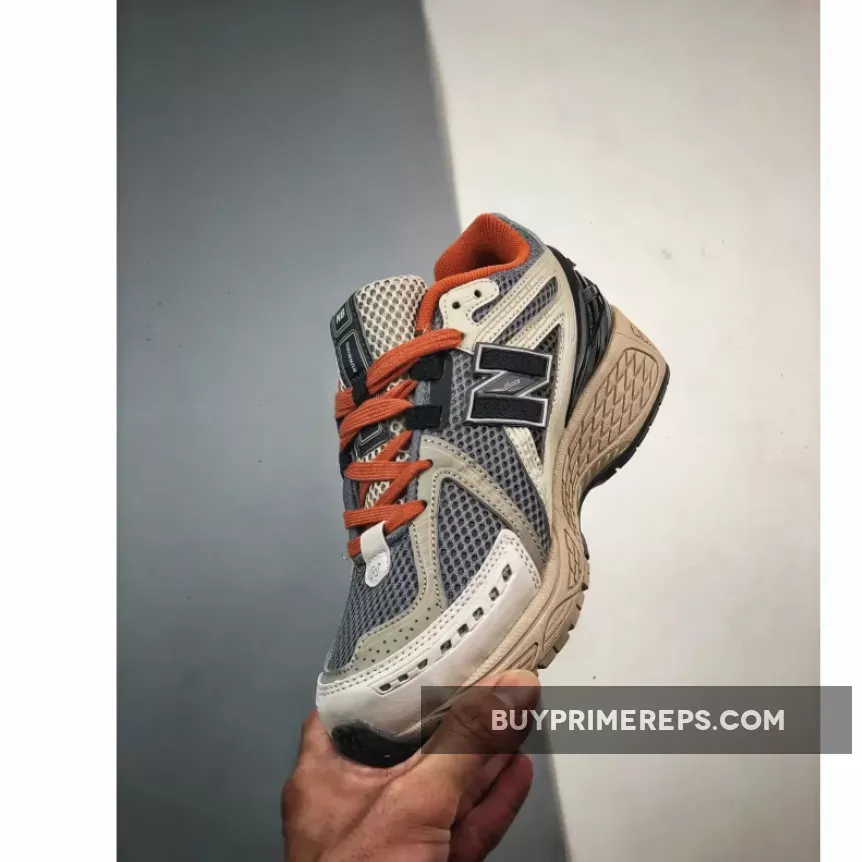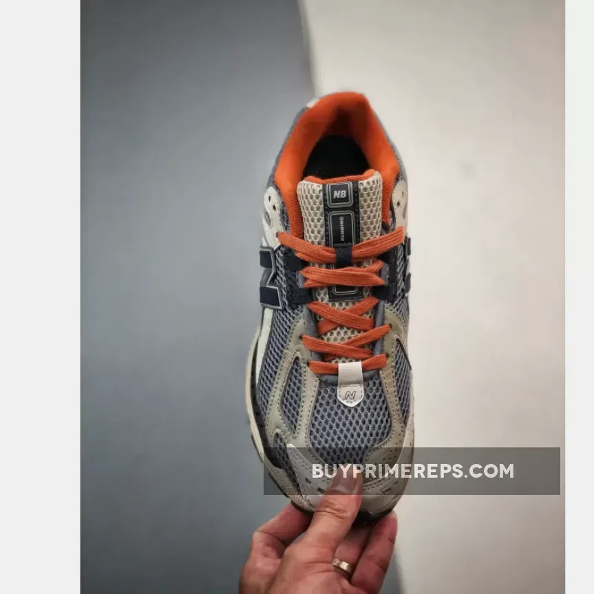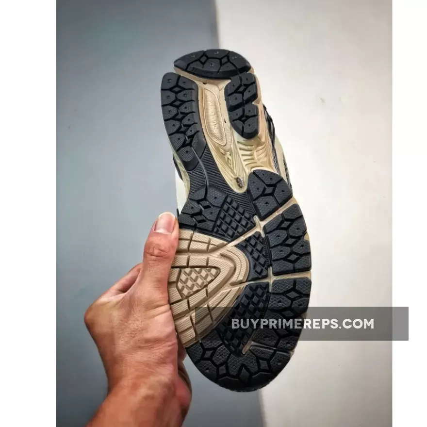 The shoe’s mesh base is dressed in shades of blue and black, creating a sleek and sophisticated appearance that’s perfect for everyday wear. The leather accents on top are in grey and white, adding a touch of luxury to the design. A cage-like overlay at the heel not only enhances stability but also adds a unique and eye-catching element to the overall look.