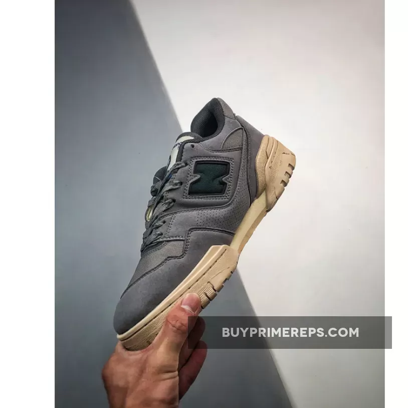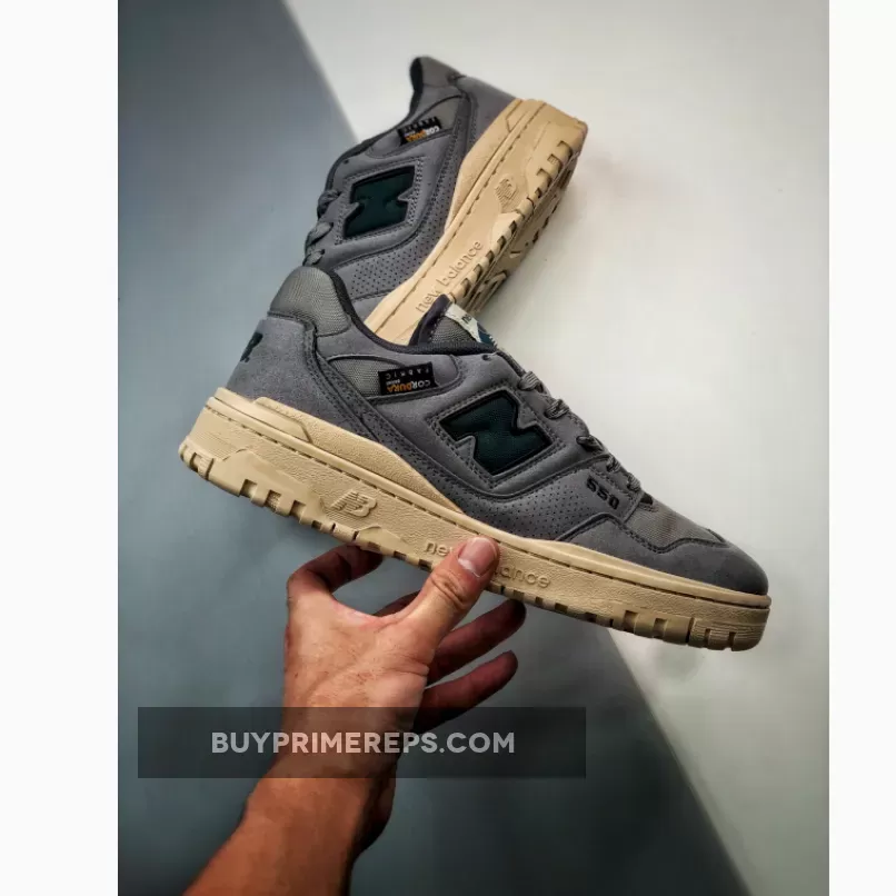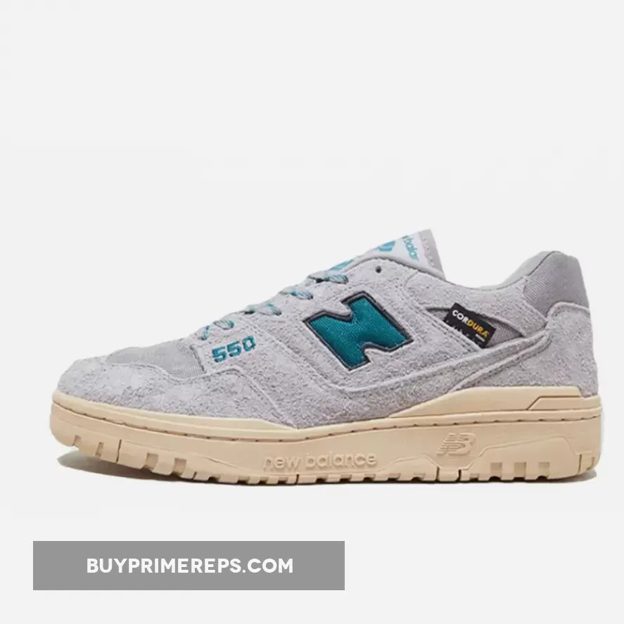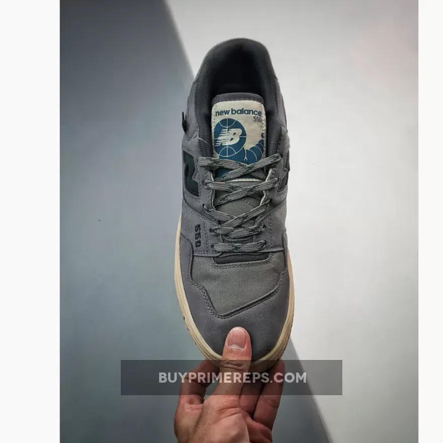 Adding a pop of color to the understated design, dark teal accents can be found throughout the sneaker. The “N” and “550” brandings, tongue tag, and two-toned laces all feature this striking teal shade, creating a bold contrast against the grey backdrop. These subtle touches of color add a unique and eye-catching element to the overall aesthetic.