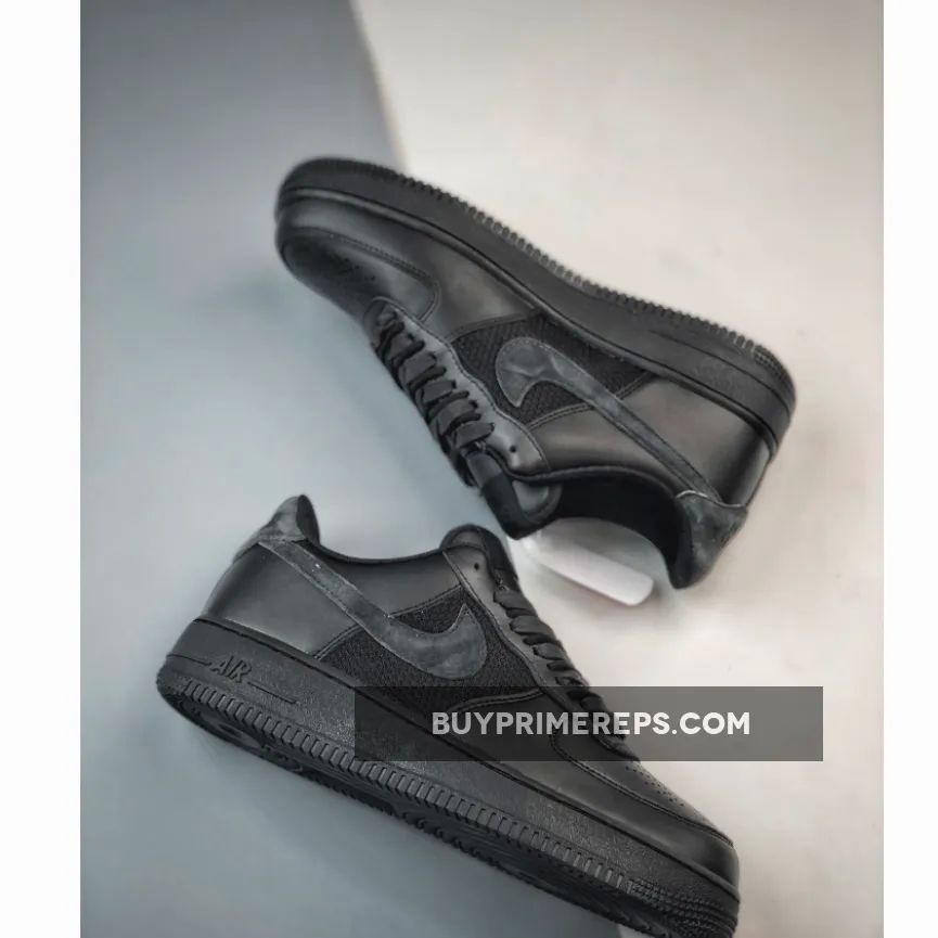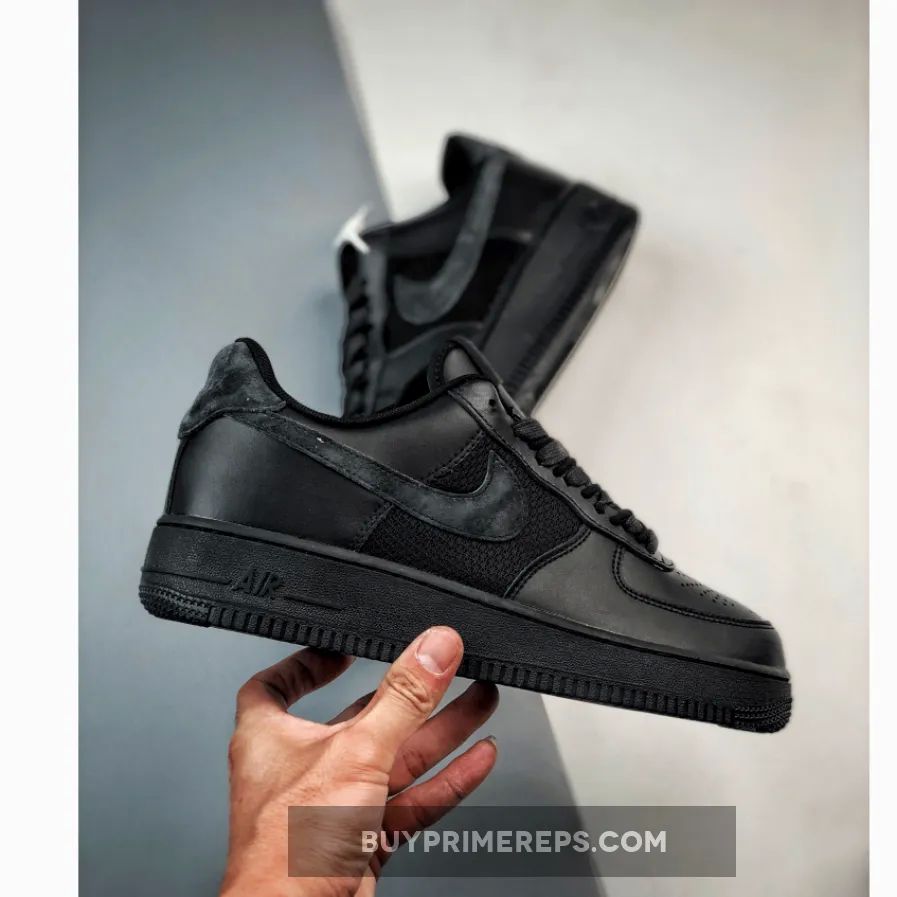 The shoe features a blacked-out colorway, with a combination of leather and mesh materials crafting the entire base. The attention to detail is evident in the Slam Jam branding motifs, such as the “A” logo perforations across the toe boxes and co-branded labels. The heels sport a flipped “NIKE AIR” imprint, adding a unique touch to the design. The insoles are imprinted with “SJ AF-1,” further emphasizing the collaboration.