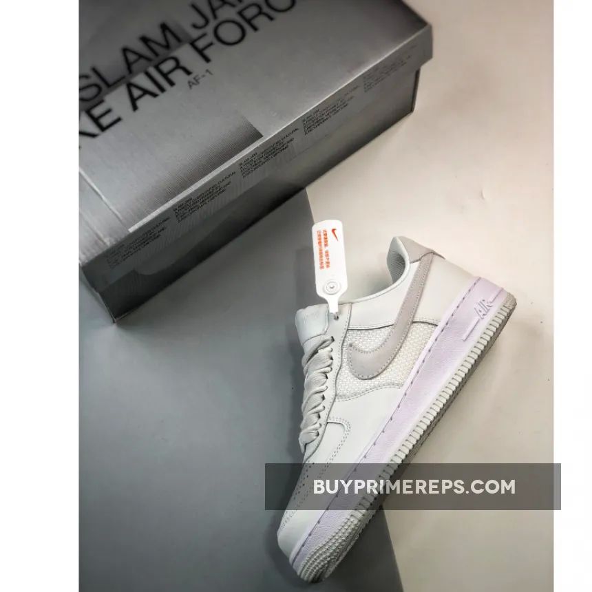 Unlike the traditional all-leather construction of most Air Force 1 models, the Slam Jam version takes it a step further by incorporating mesh fabric on the midfoot panels, adding a touch of modernity to the classic design. The Swooshes, on the other hand, are made from supple suede, providing a luxurious feel to the sneaker.